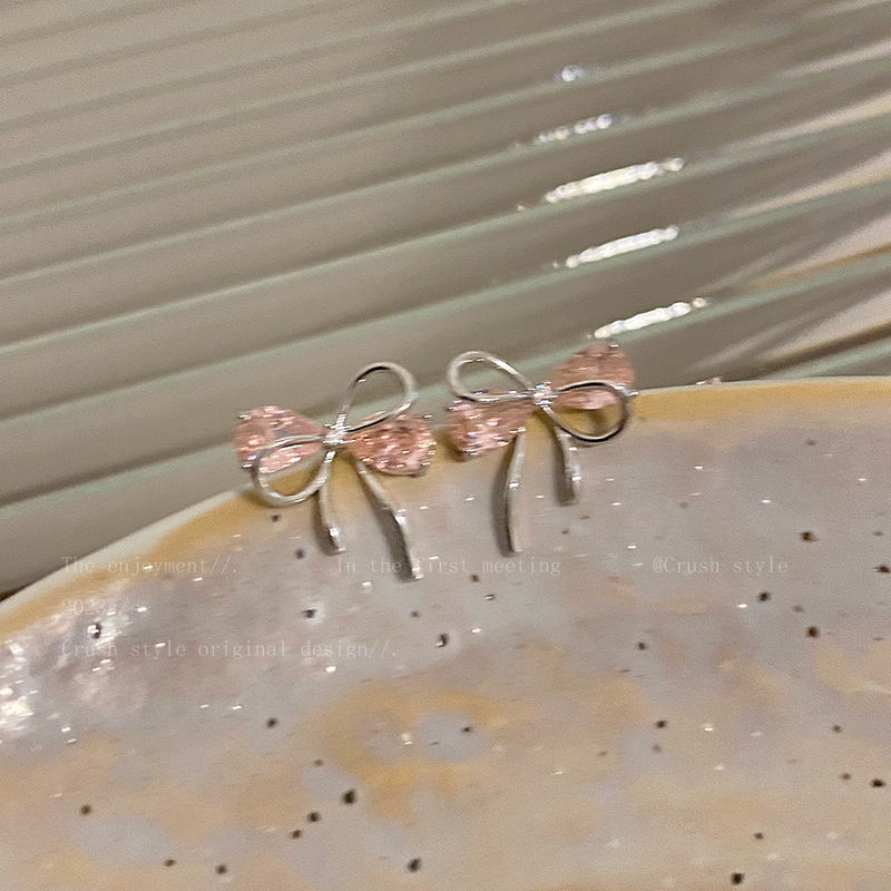 bow zircon stud earrings
