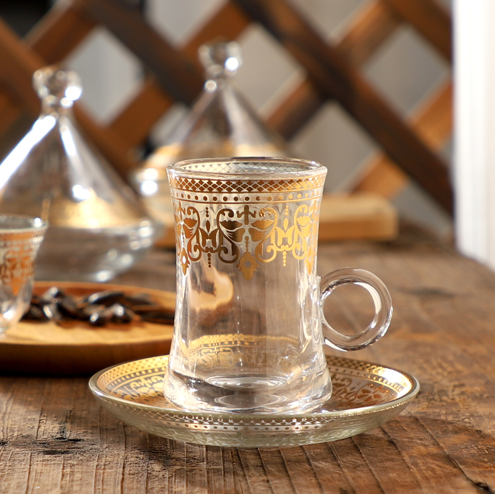 3/6 head cross-border export cross-border turkish characteristics middle east bronzing luxury glass coffee set tea cup suit 中文版
