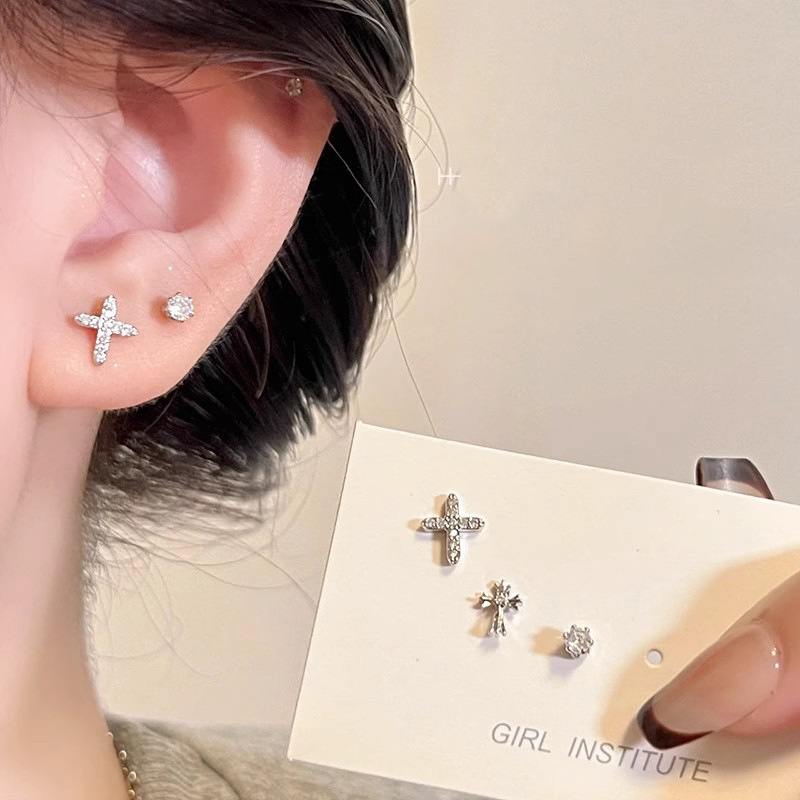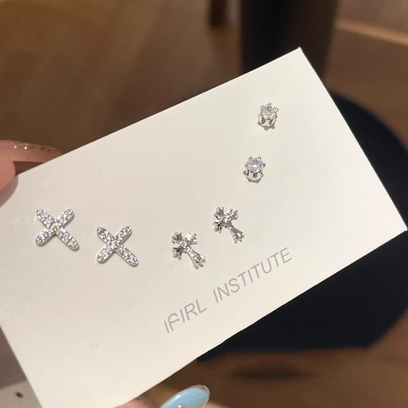 silver cross six-piece earrings