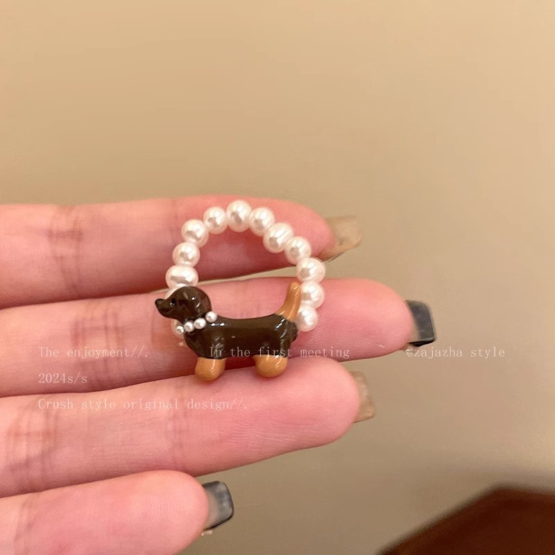 brown sausage dog pearl ring