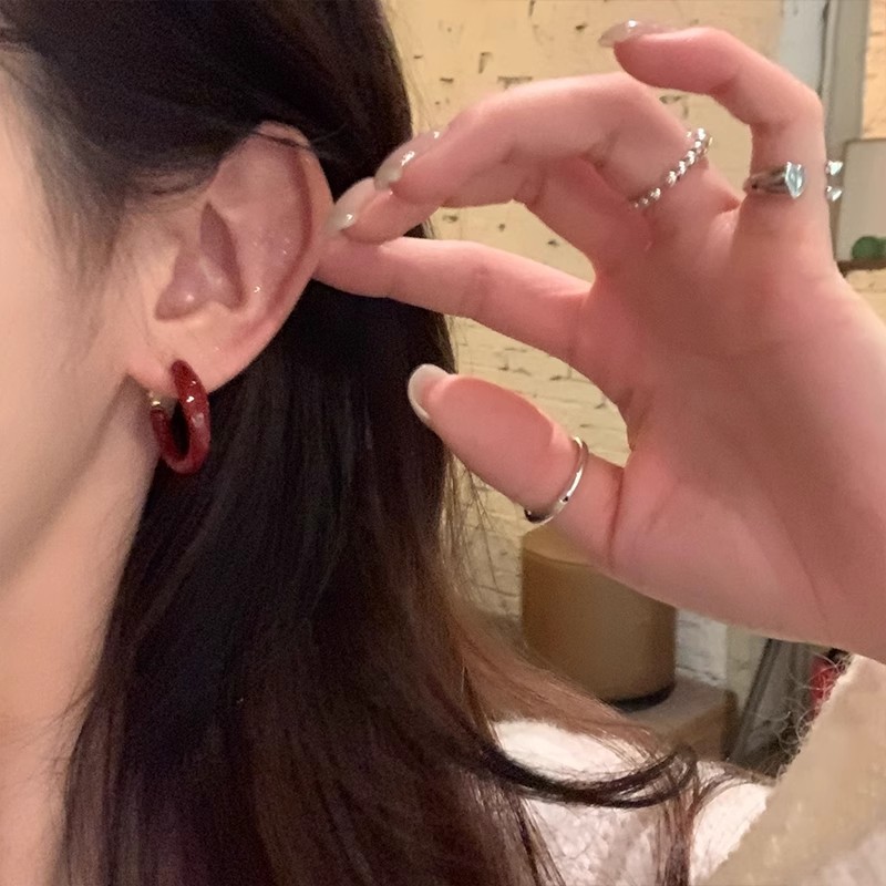 ankela red small ear ring pairs