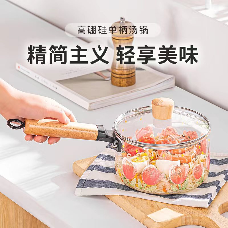 ins handle gaopeng silicon glass soup pot glass cooking noodle pot household large capacity soup coying pot with lid 中文版