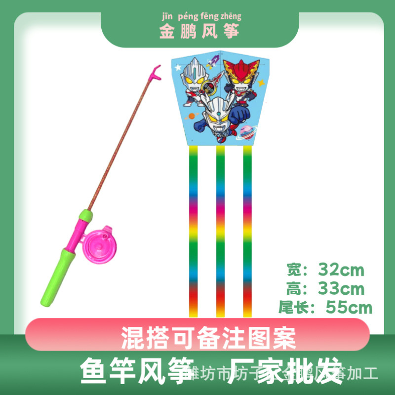 black bottom cartoon ultraman + color telescopic fishing rod