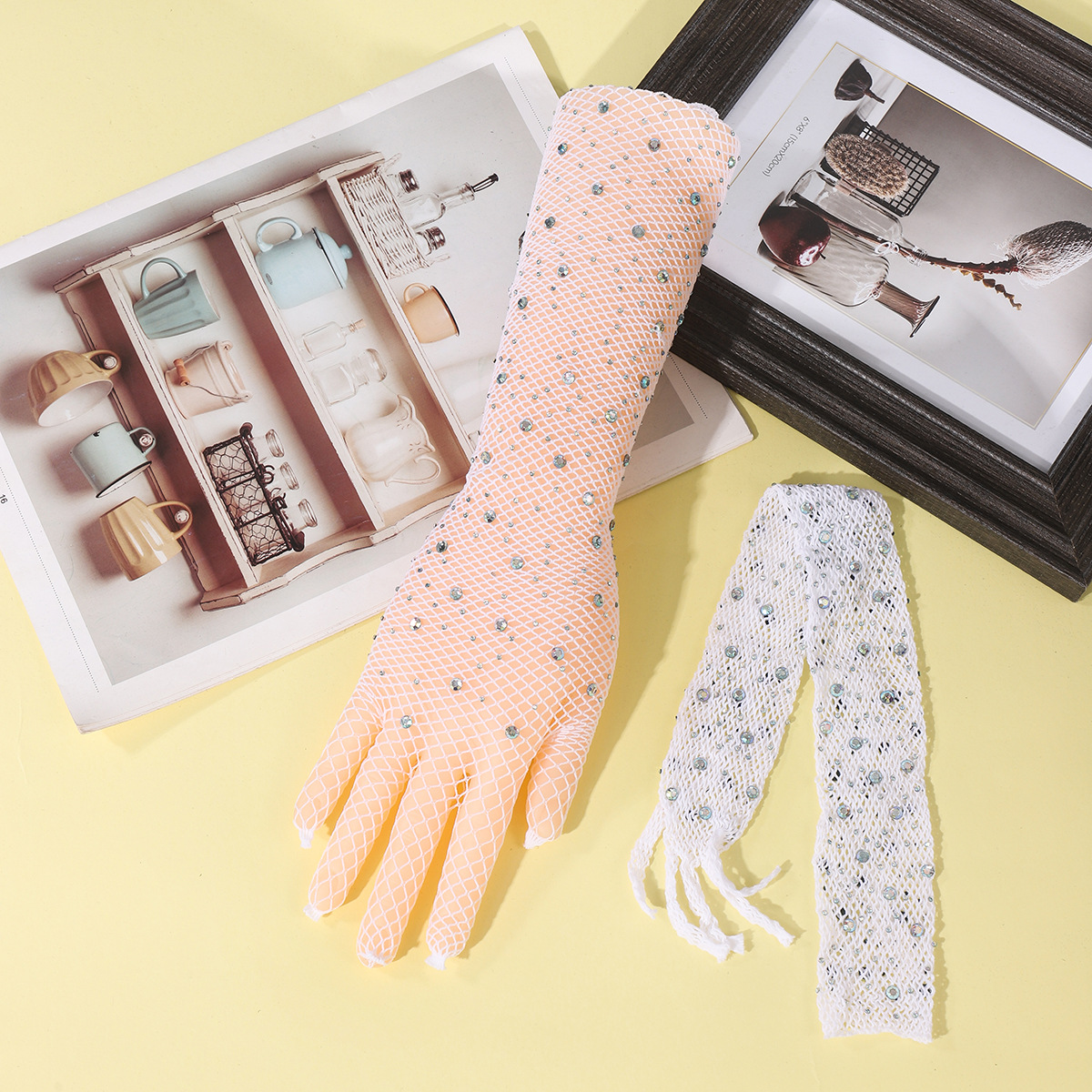9902-lace mesh with diamond white five fingers