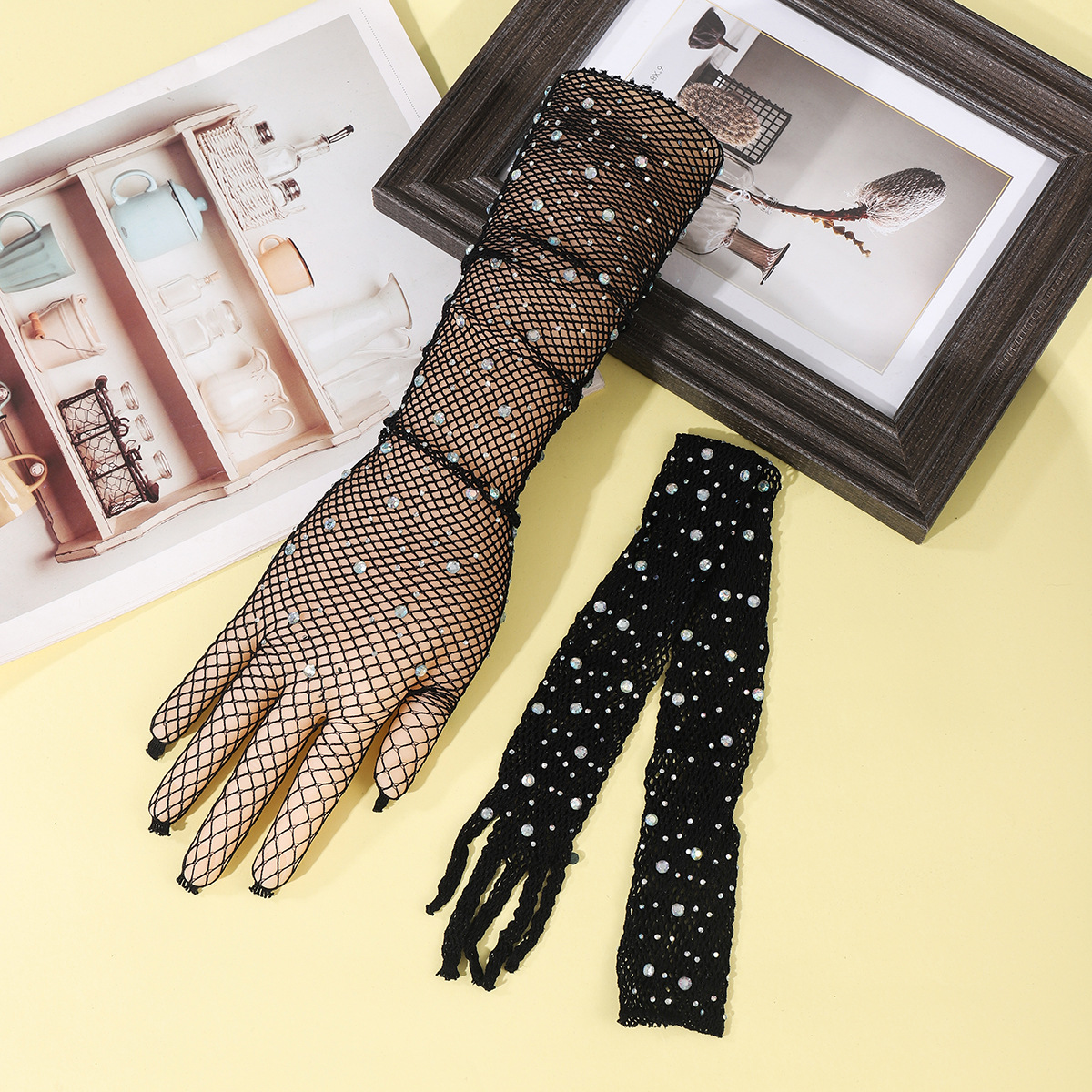 9902-lace mesh with diamond black five fingers
