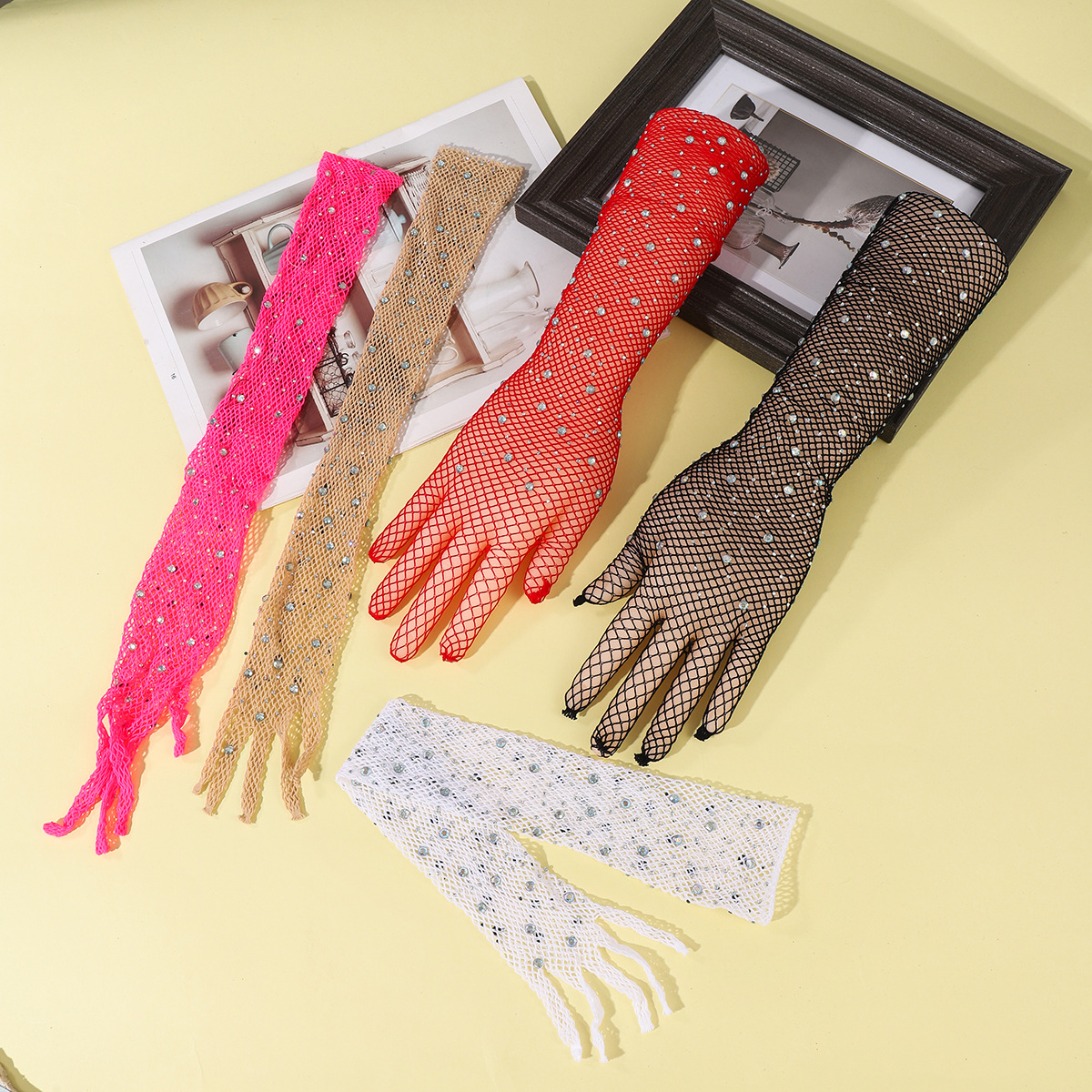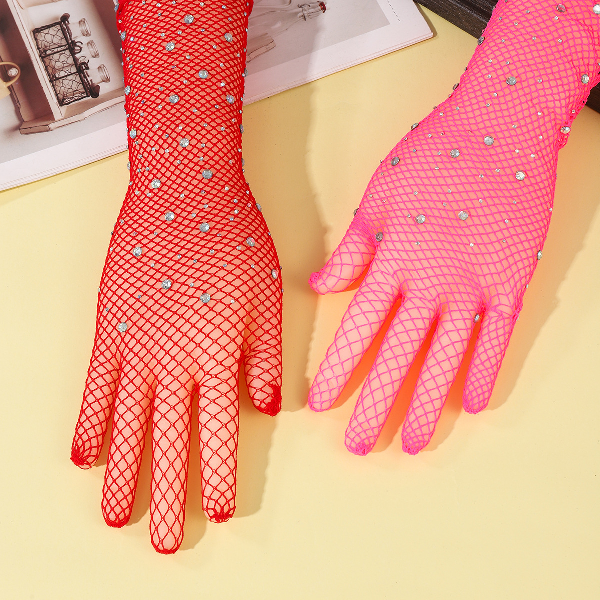 9901-lace mesh with diamond red five fingers