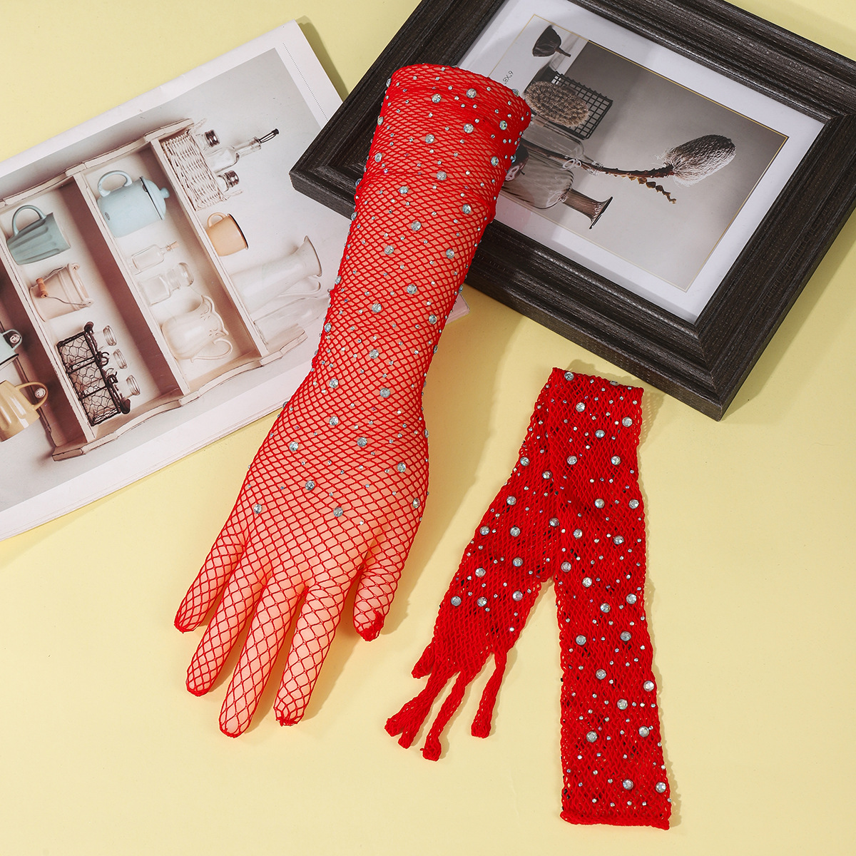 9903-lace mesh with diamond red five fingers