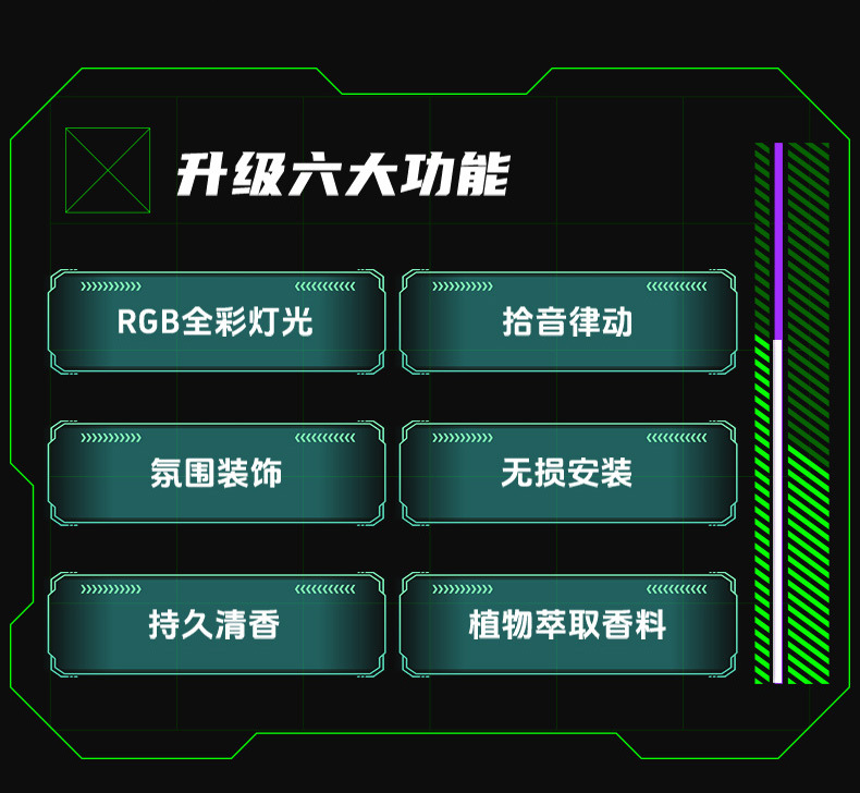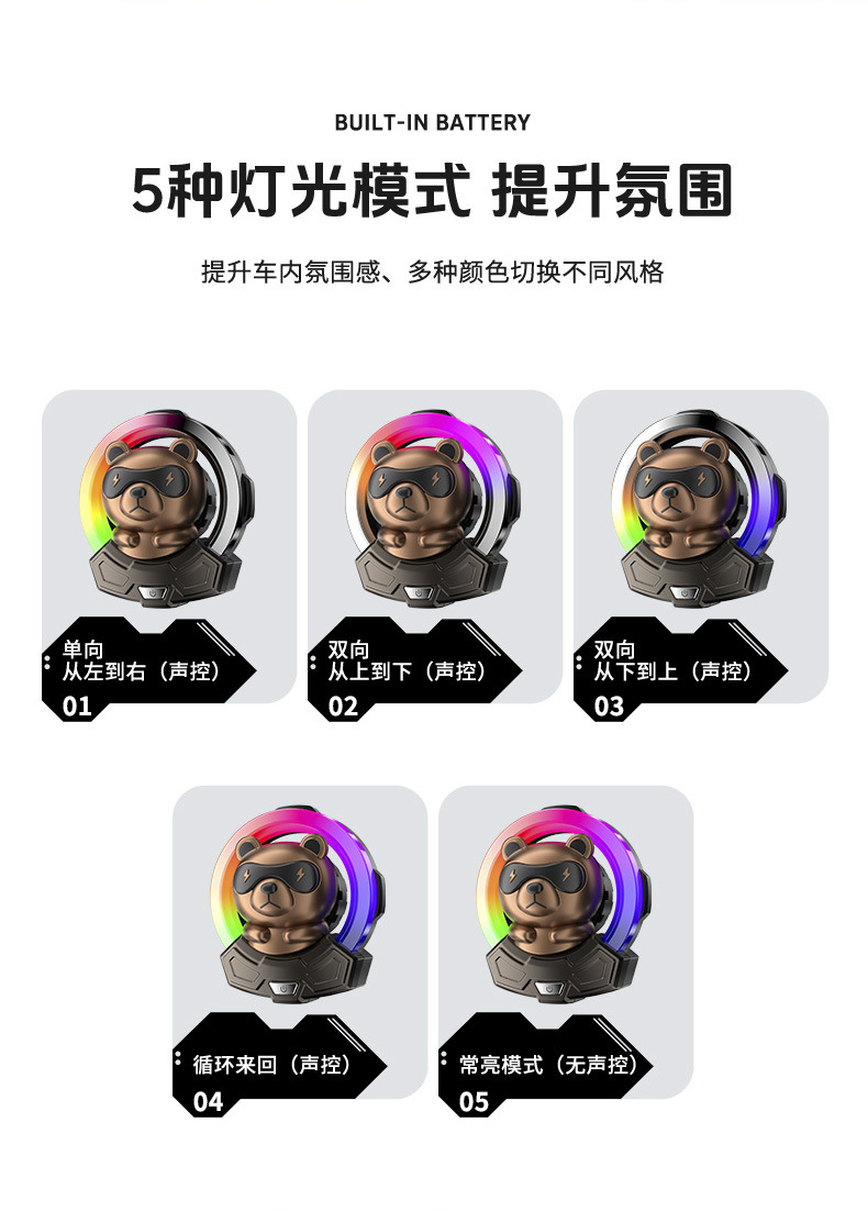 【Product Features】: Ambient lighting effects, rhythm rhythm, fragrant with the wind, refreshing car interior air.