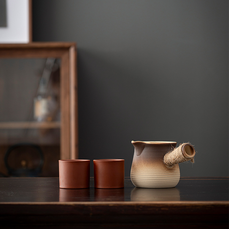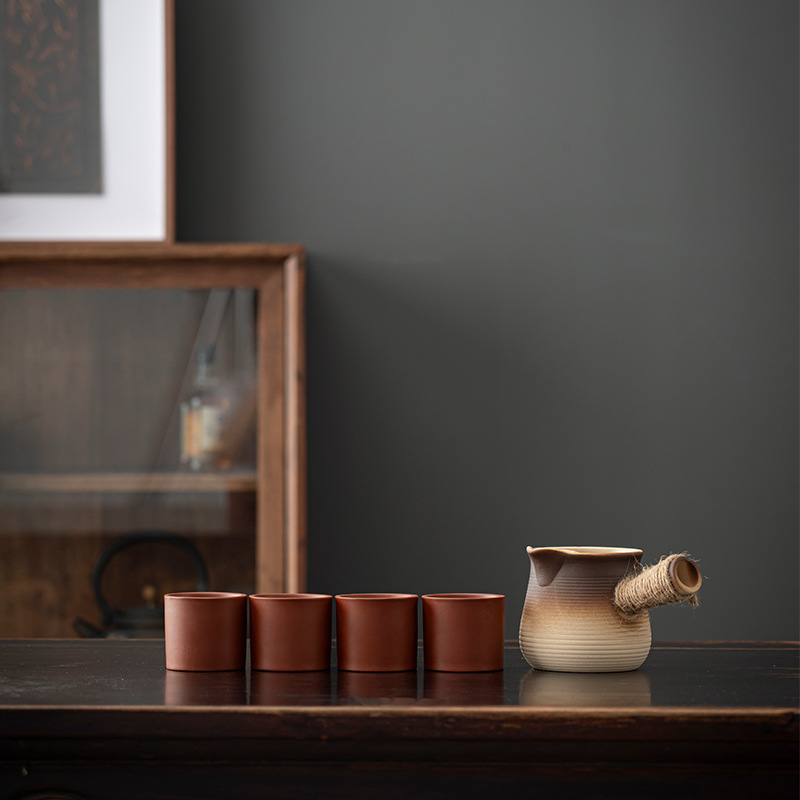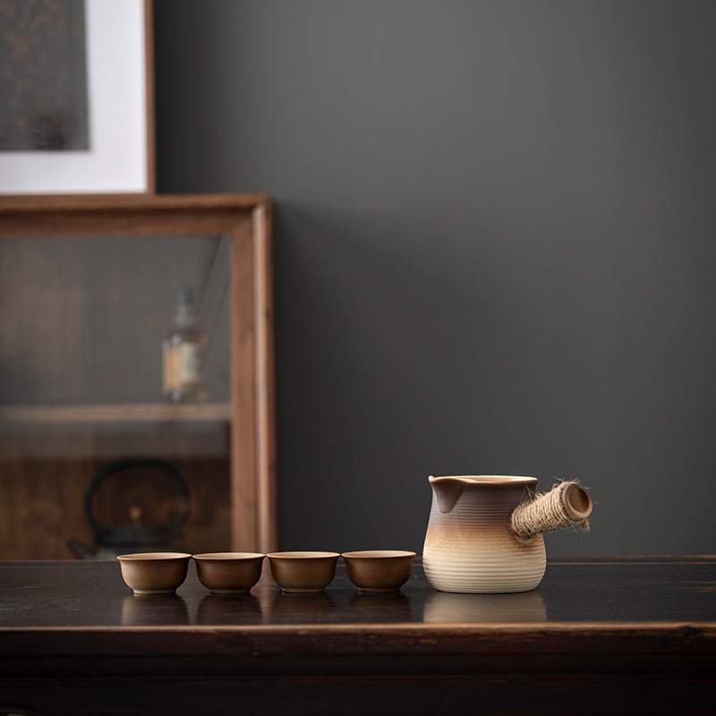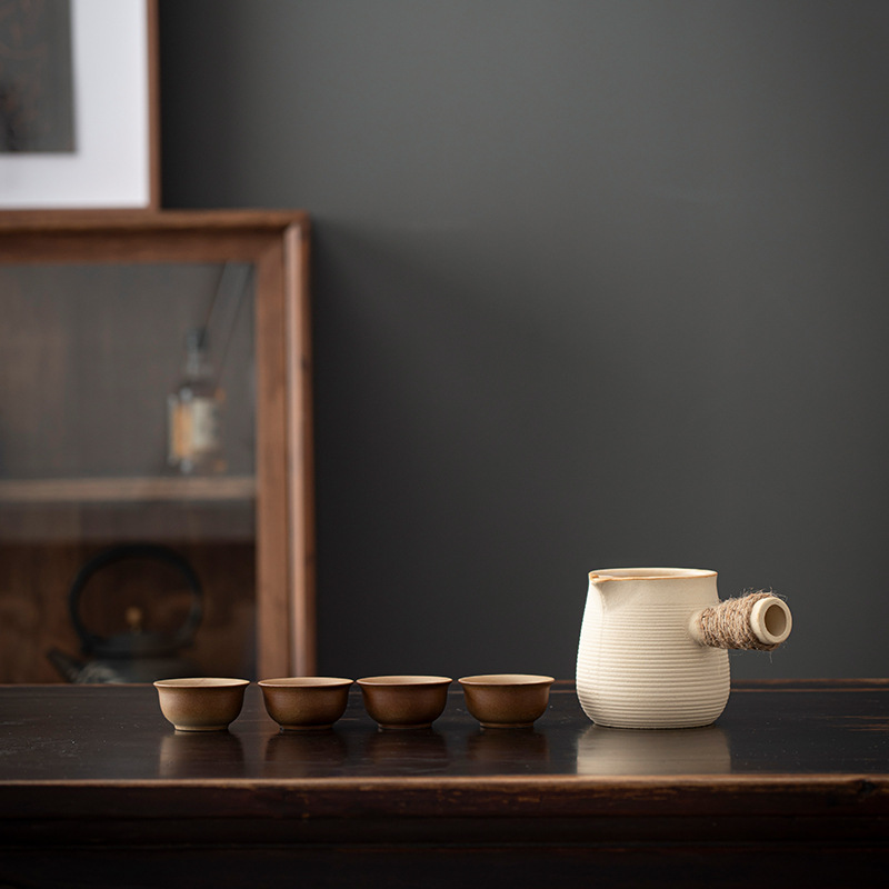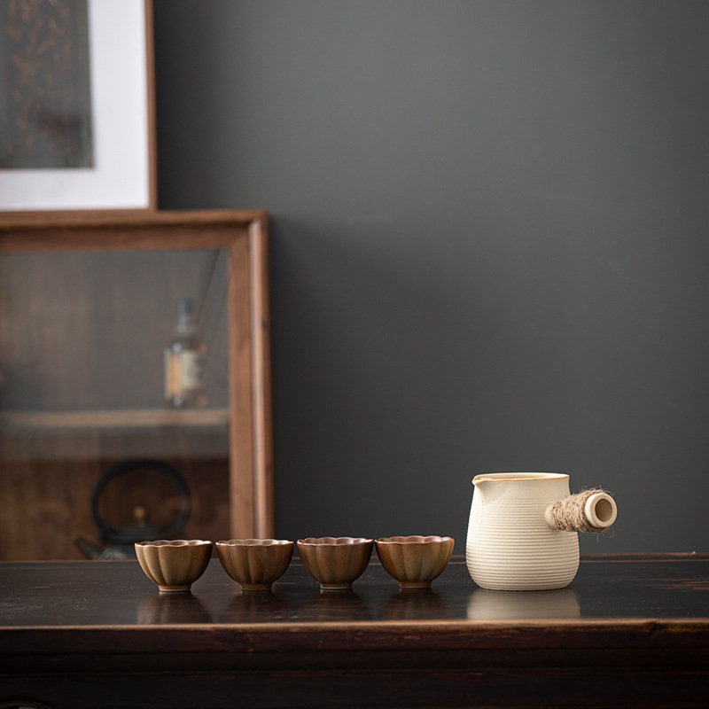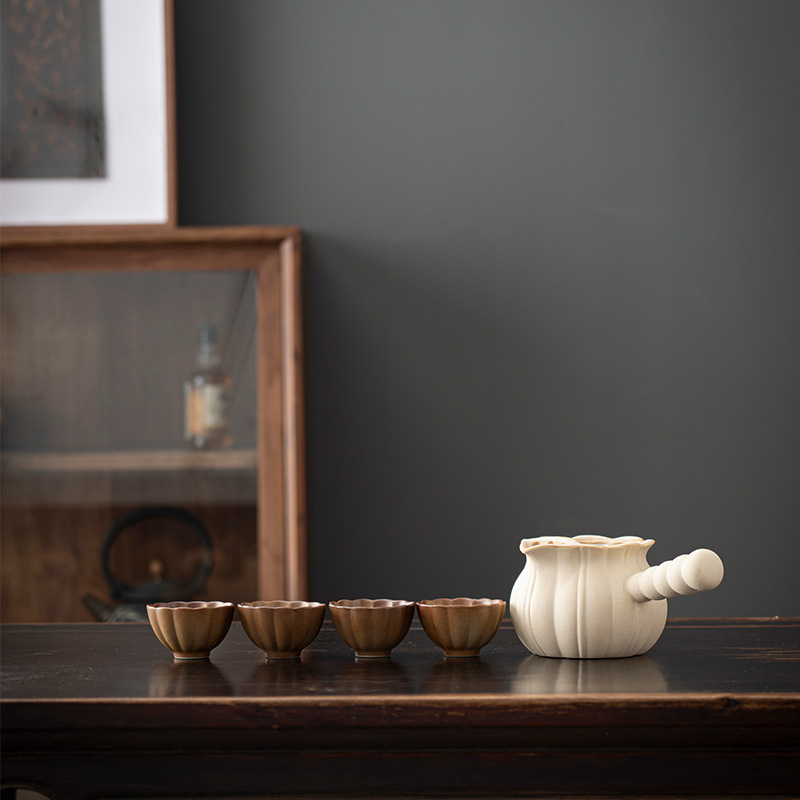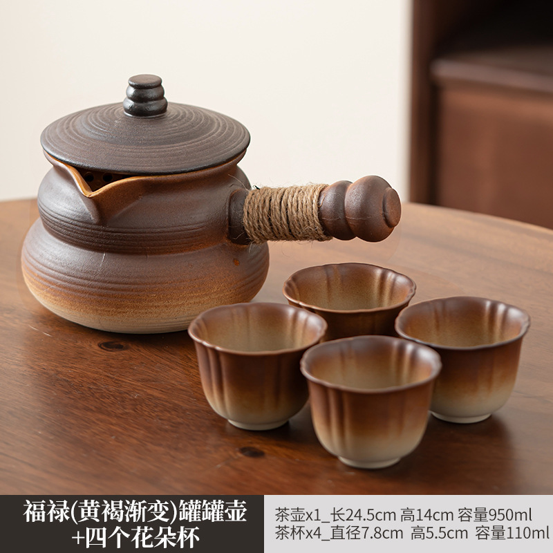 fu lu (khaki gradient) can pot pot + four flower cups