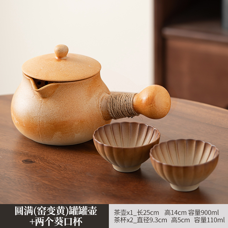 fu lu (kiln baked yellow) can pot + two petal cups