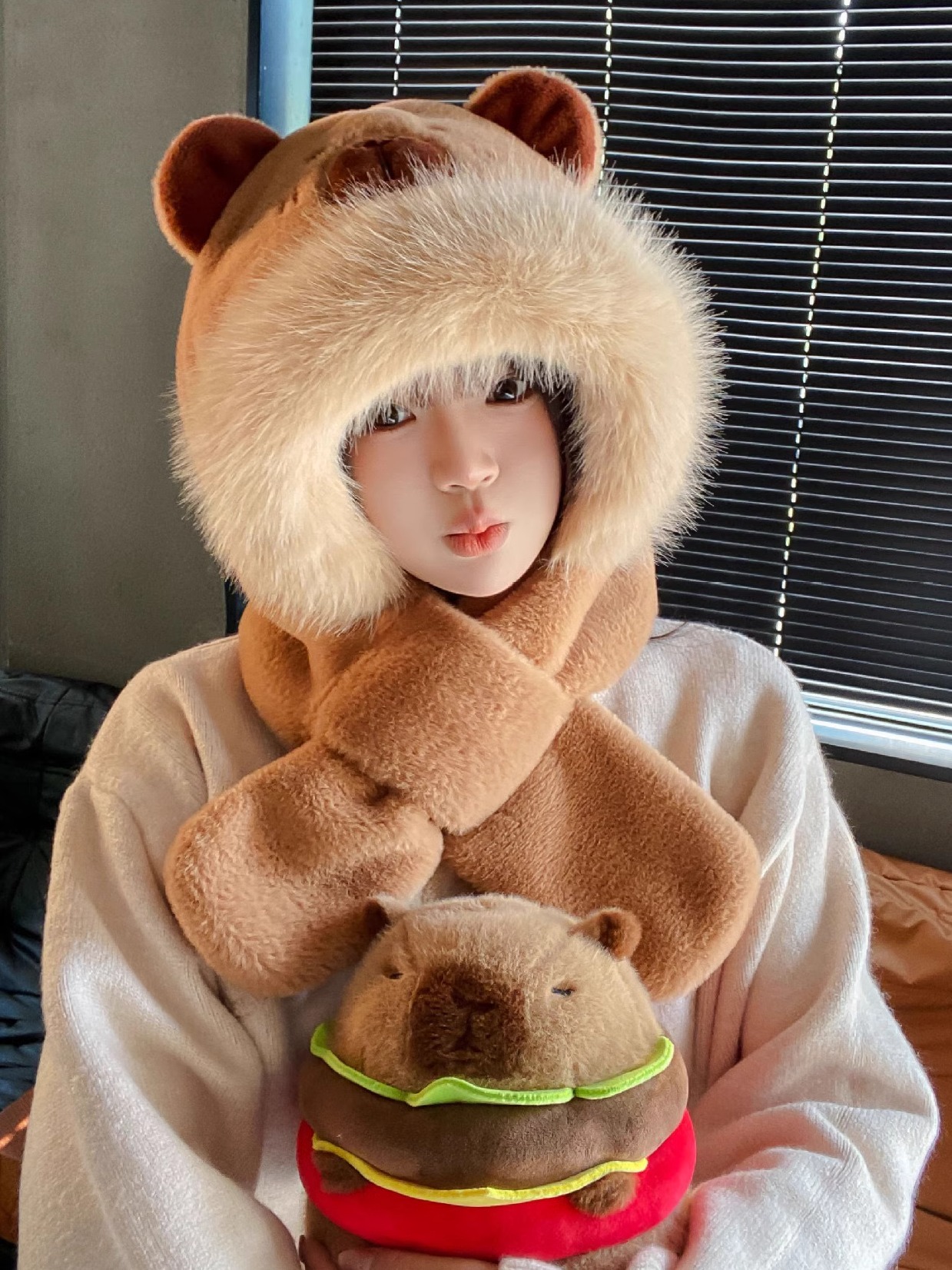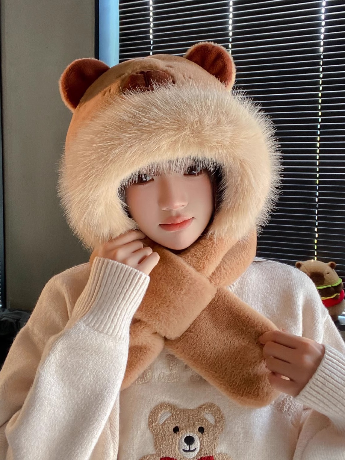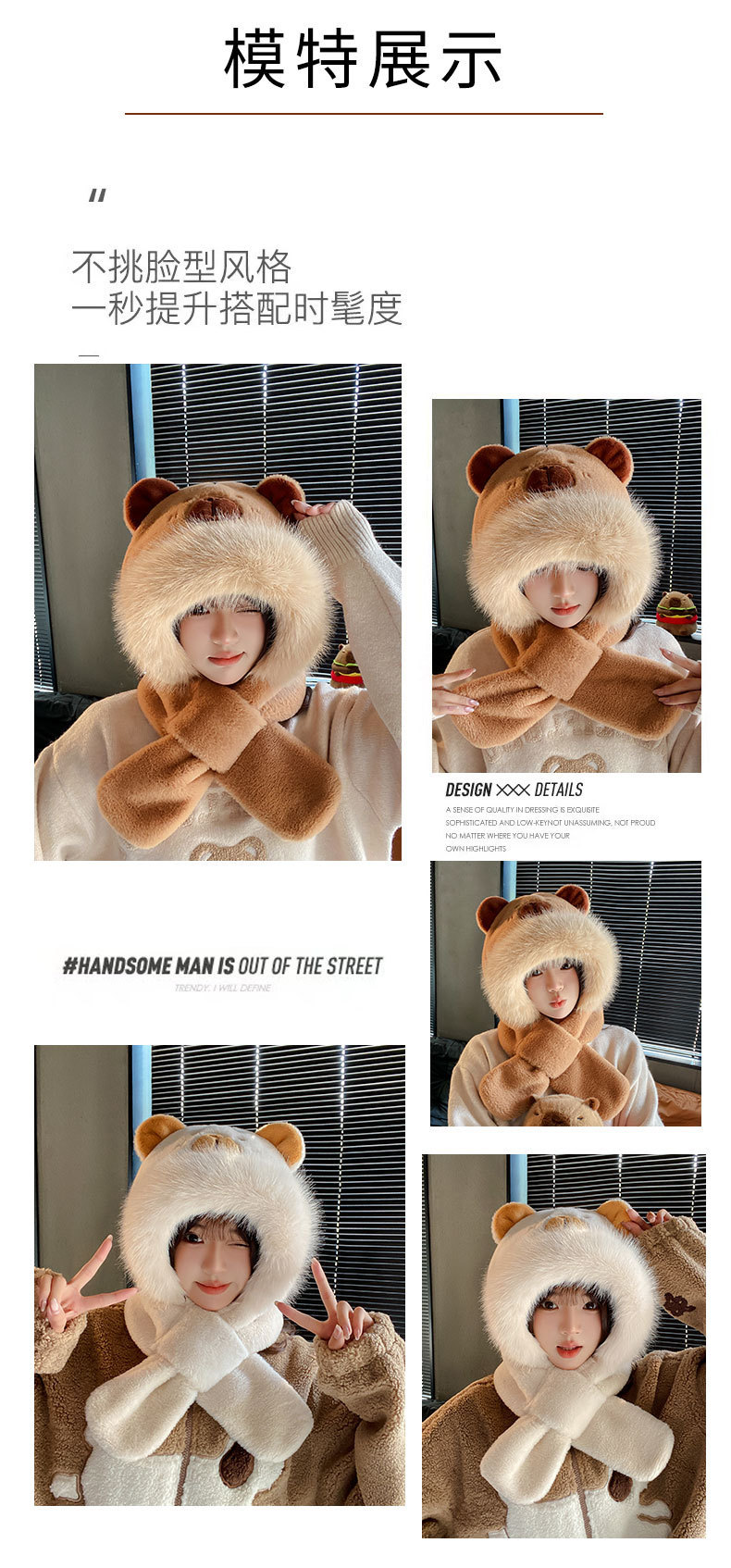high-end thin cap bear-beige