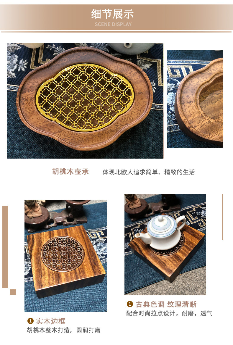black walnut bamboo tea tray-ruyi
