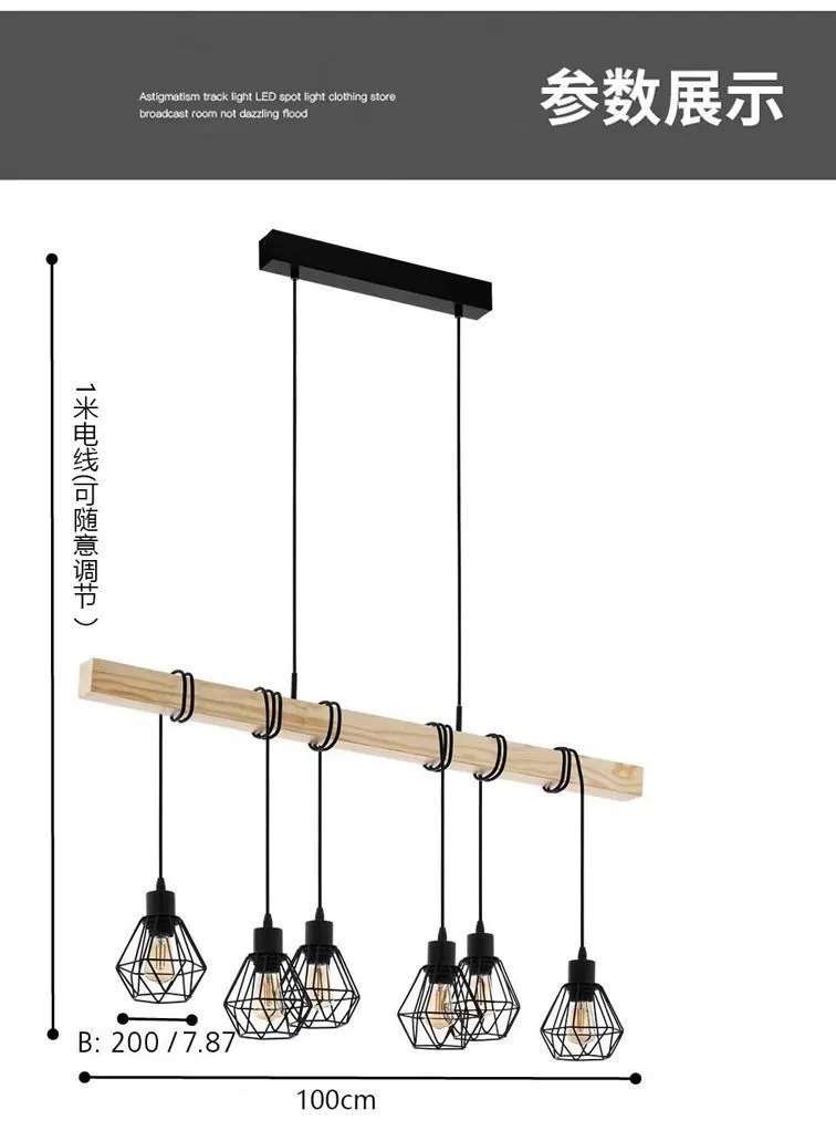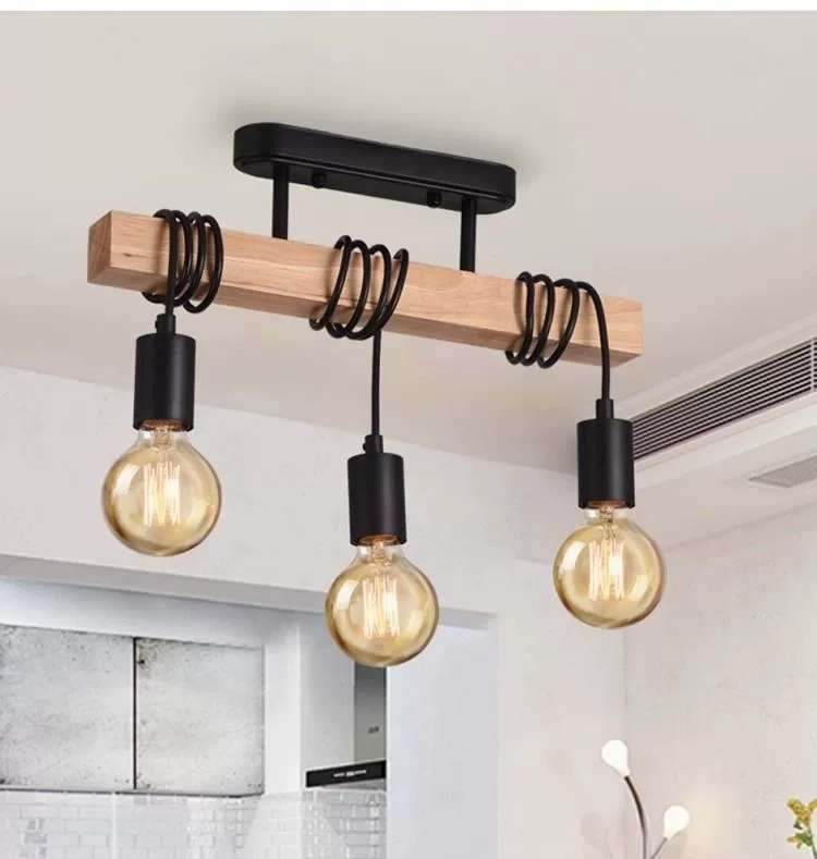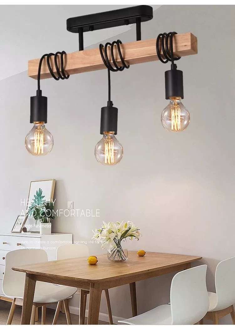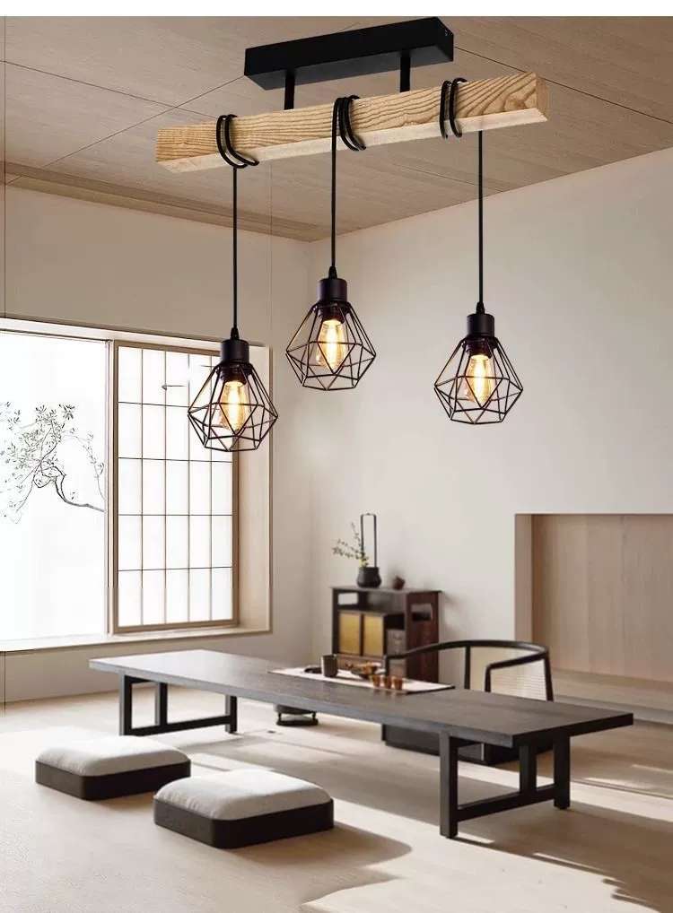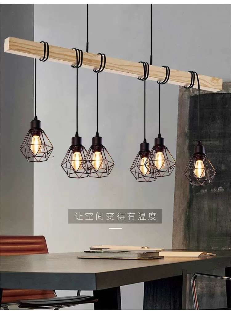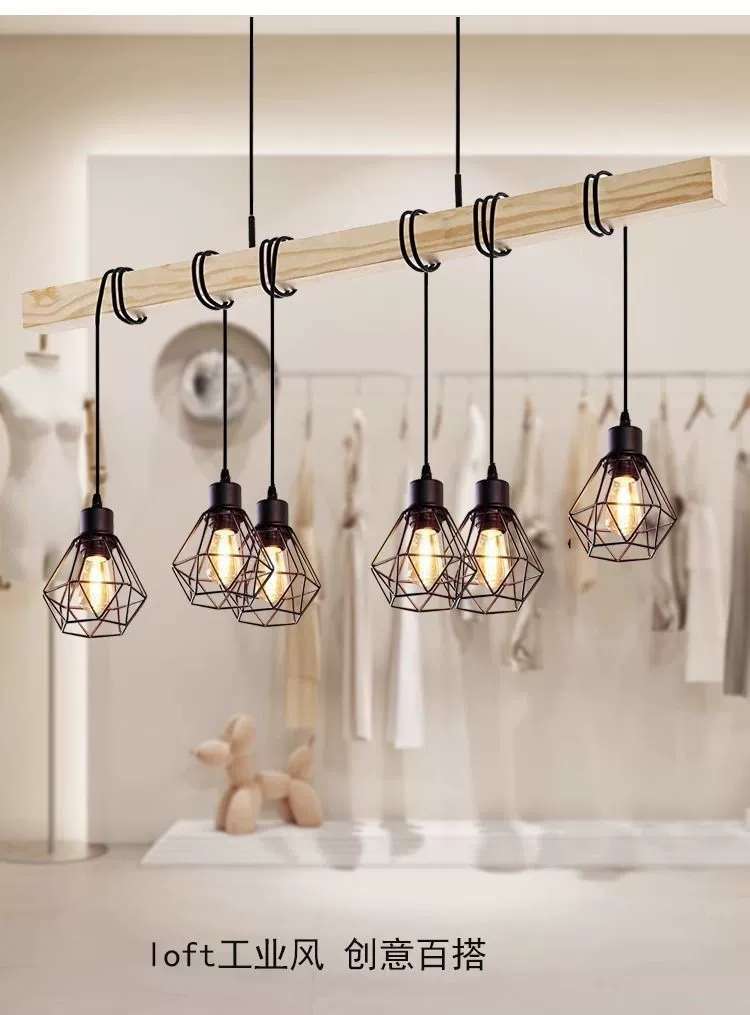 simple personality creative wooden black three-head six-head restaurant chandelier coffee shop bar wooden black ceiling lamp 中文版