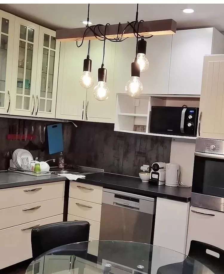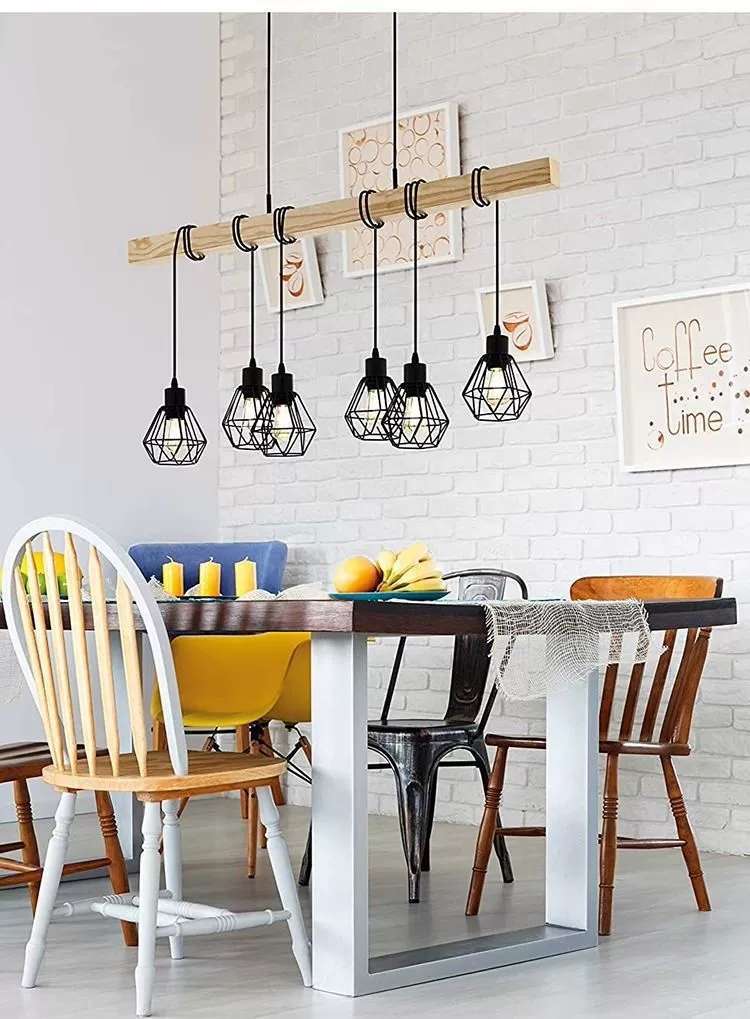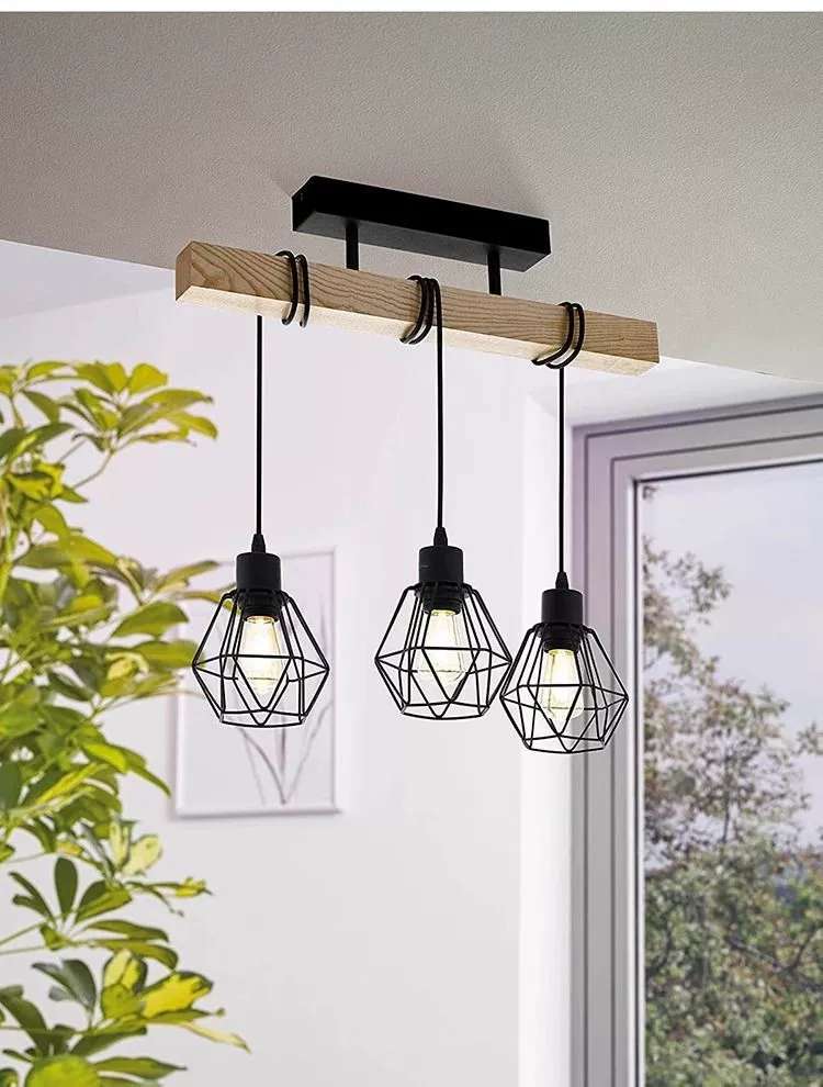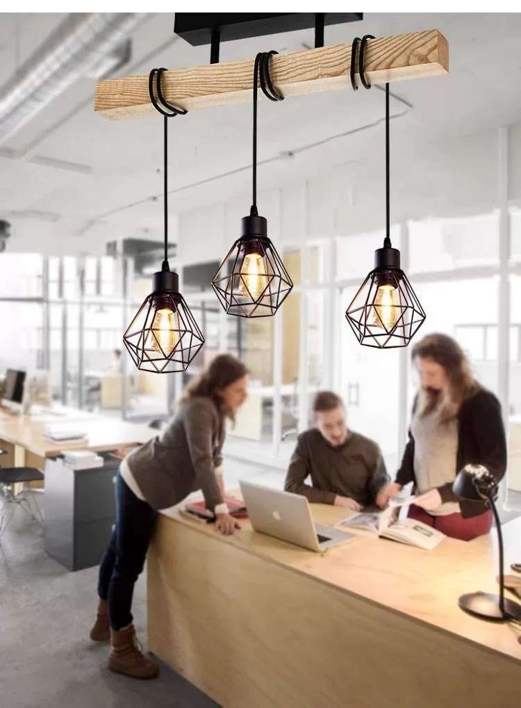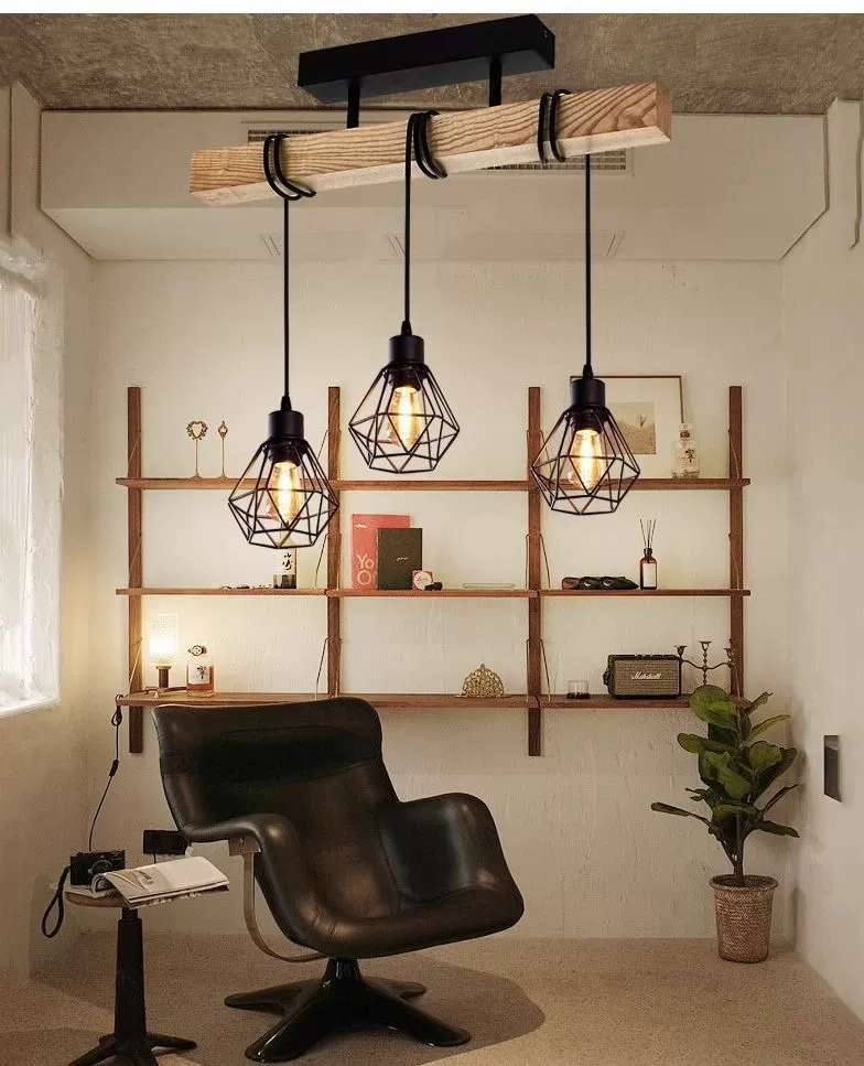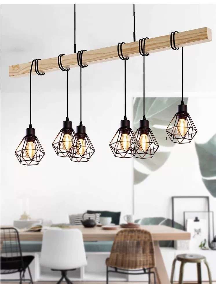 simple personality creative wooden black three-head six-head restaurant chandelier coffee shop bar wooden black ceiling lamp 中文版