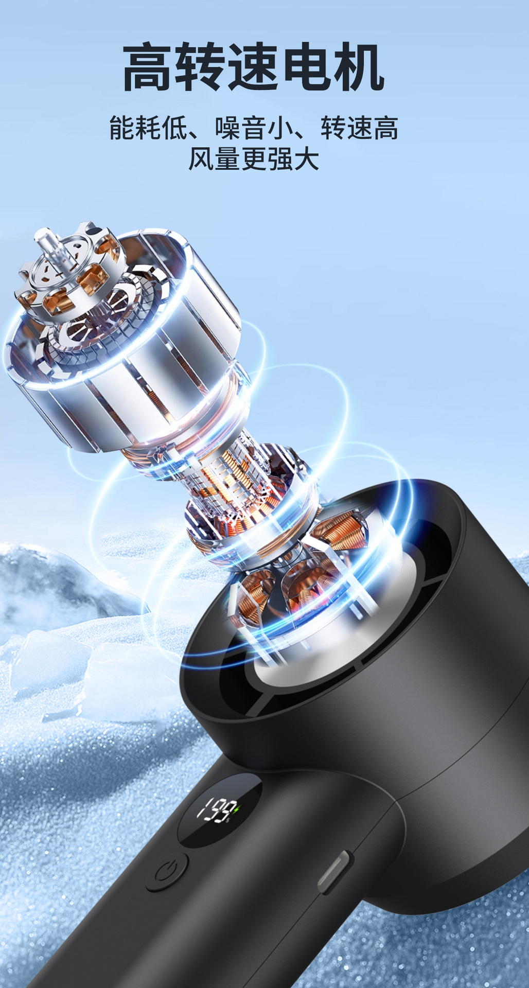 New T-100S Handheld High-Speed Fan with 1-199 Speed Settings
