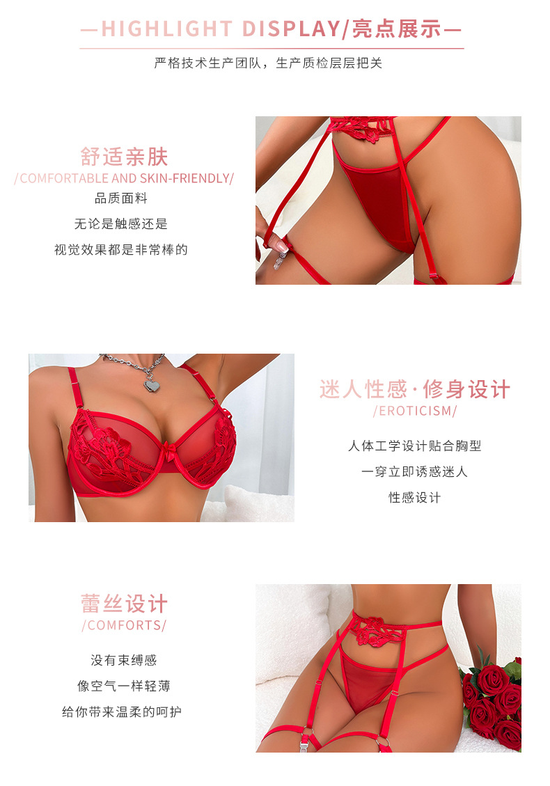 european and american new cross-border sexy underwear three-point open file teasing transparent tempting bed pajamas suit 中文版