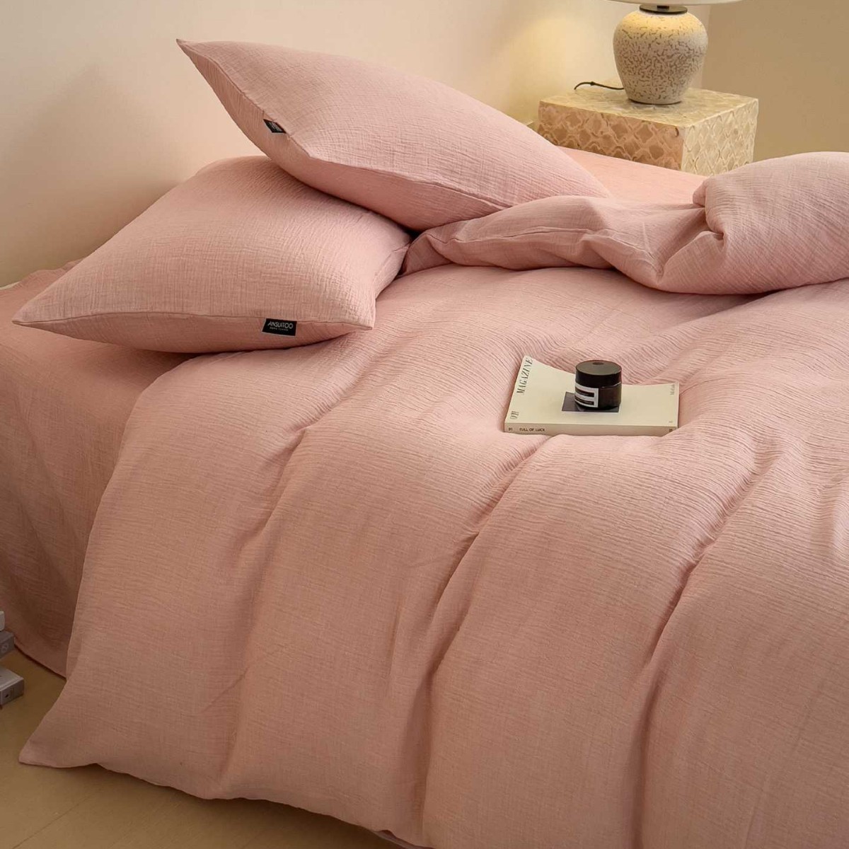 Pure color wrinkled gauze four piece set