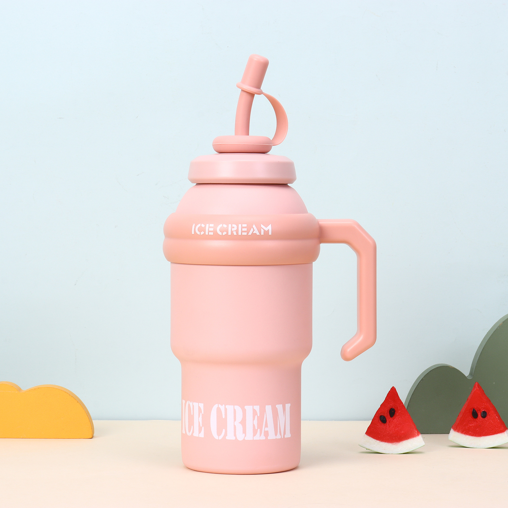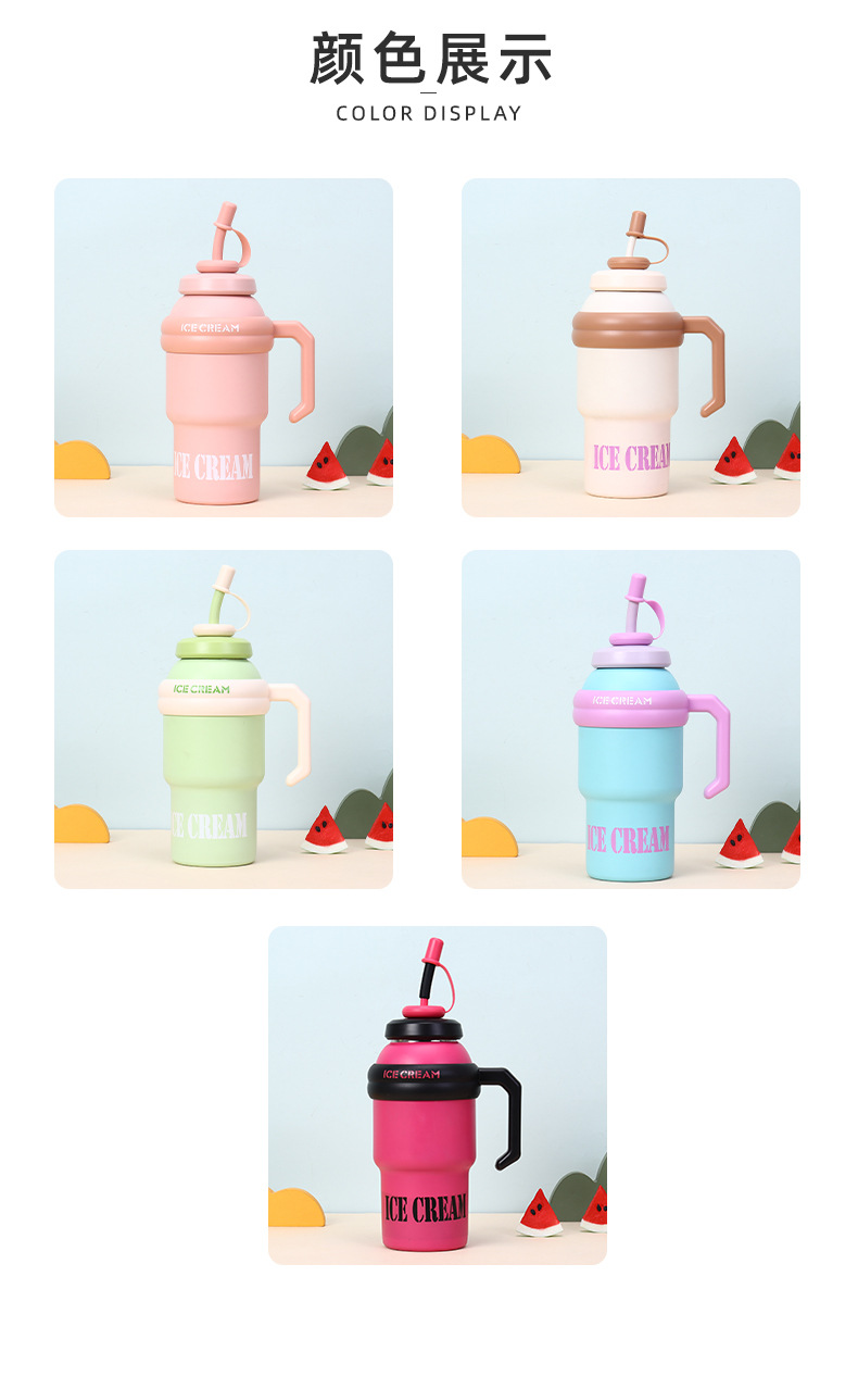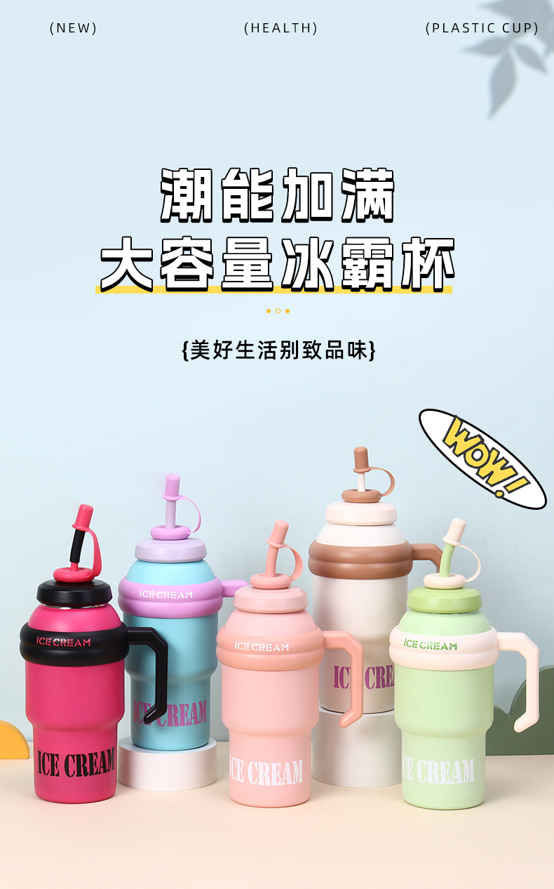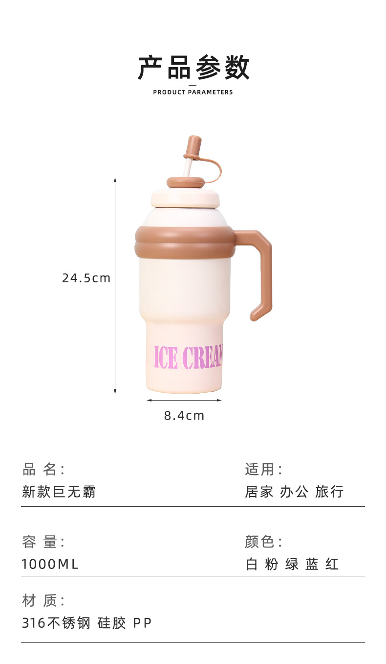 processing customized large capacity large ice cup portable 304 stainless steel thermos cup plus-sized handle straw cup 中文版