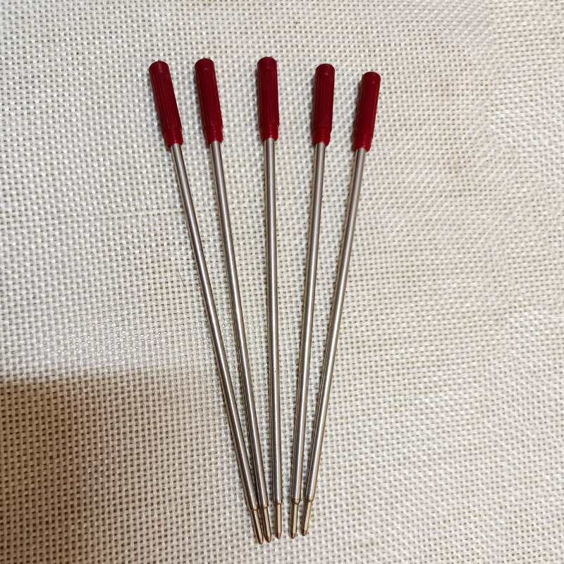 Wholesale stock of high-quality round ballpoint pen refills, German-made quality, smooth and continuous writing without smudging.