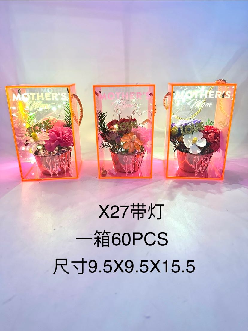 square acrylic portable dried flower gift box with light mother's day teacher's day valentine's day birthday gift 中文版