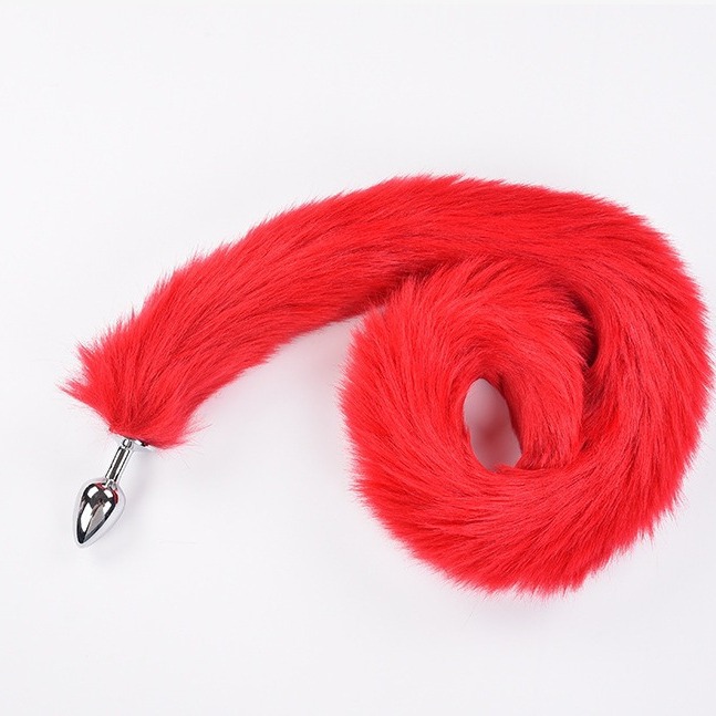 extra long red artificial wool-metal butt plug large