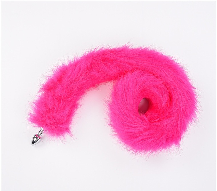 extra long pink artificial wool-metal butt plug large