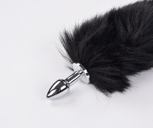 extra long black artificial wool-metal butt plug large size (color can be noted)