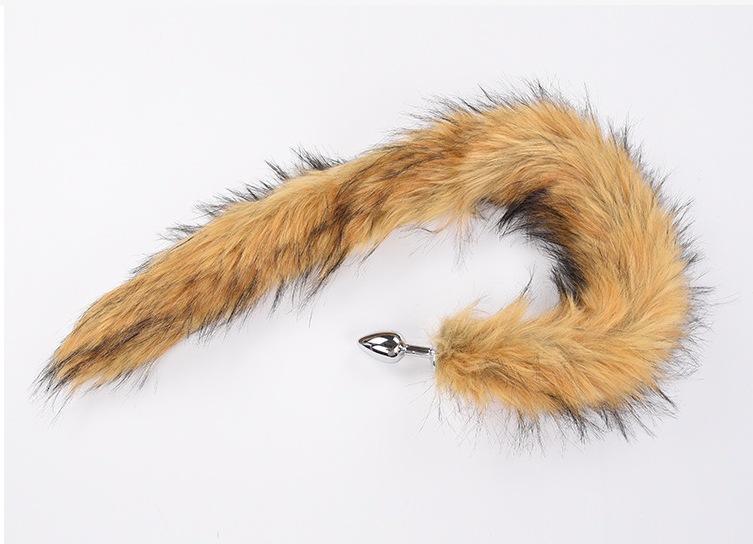 extra long brown artificial wool-metal butt plug large