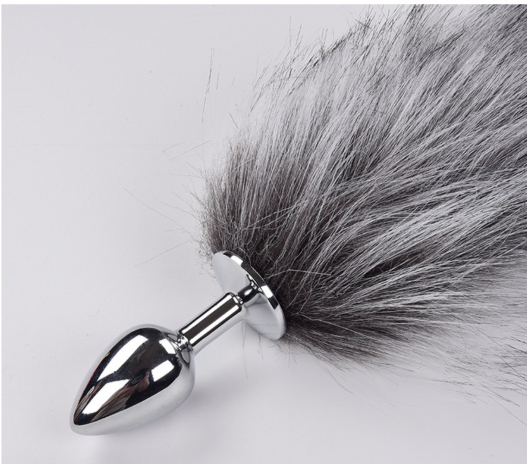 extra long gray artificial wool-metal butt plug large