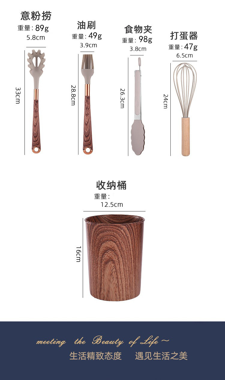 wood grain 11-piece set with color box containing pp barrel