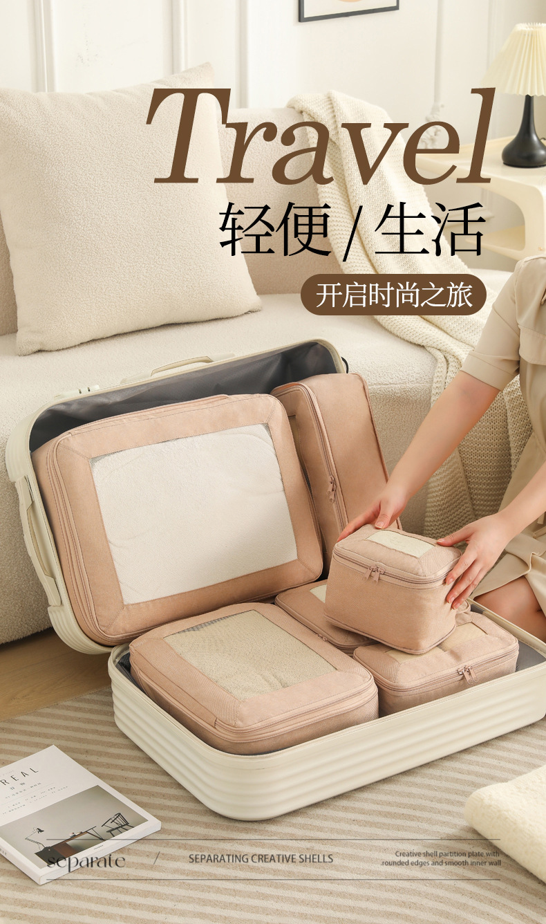 beige travel buggy bag 6-piece set