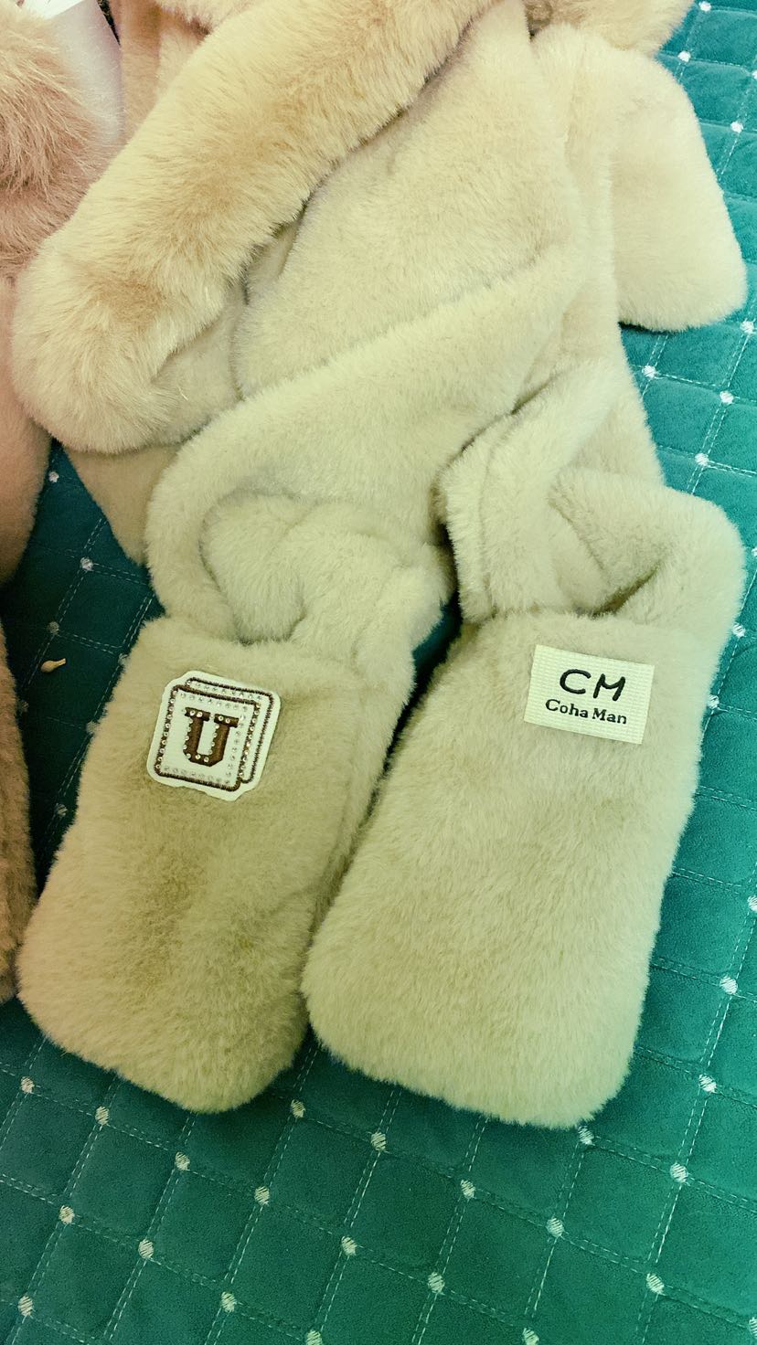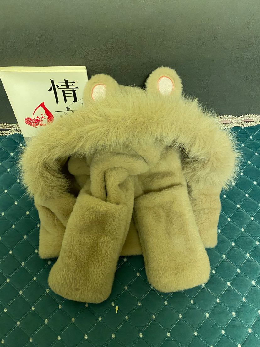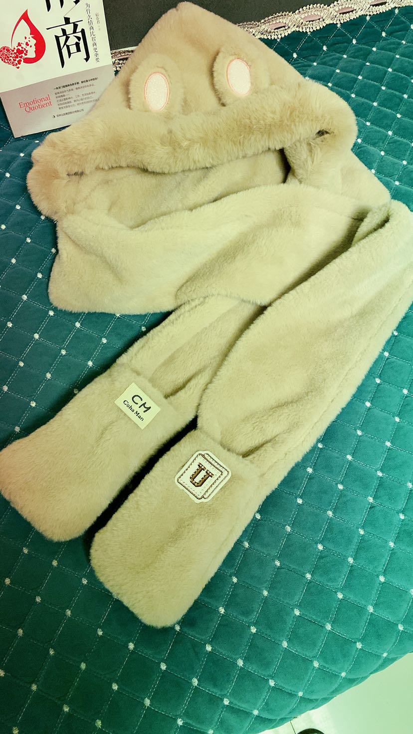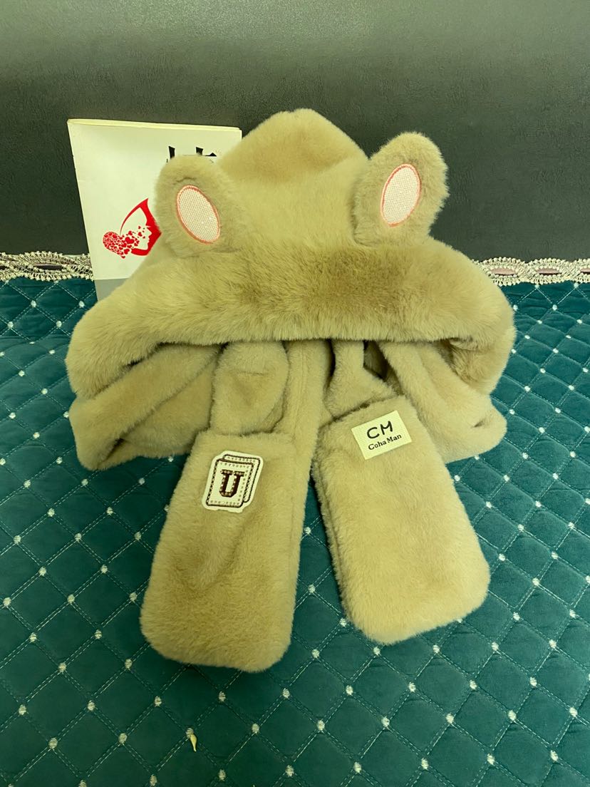 autumn and winter hooded scarf gloves plush integrated scarf winter thermal three-piece suit cycling cap warm thickened cap 中文版