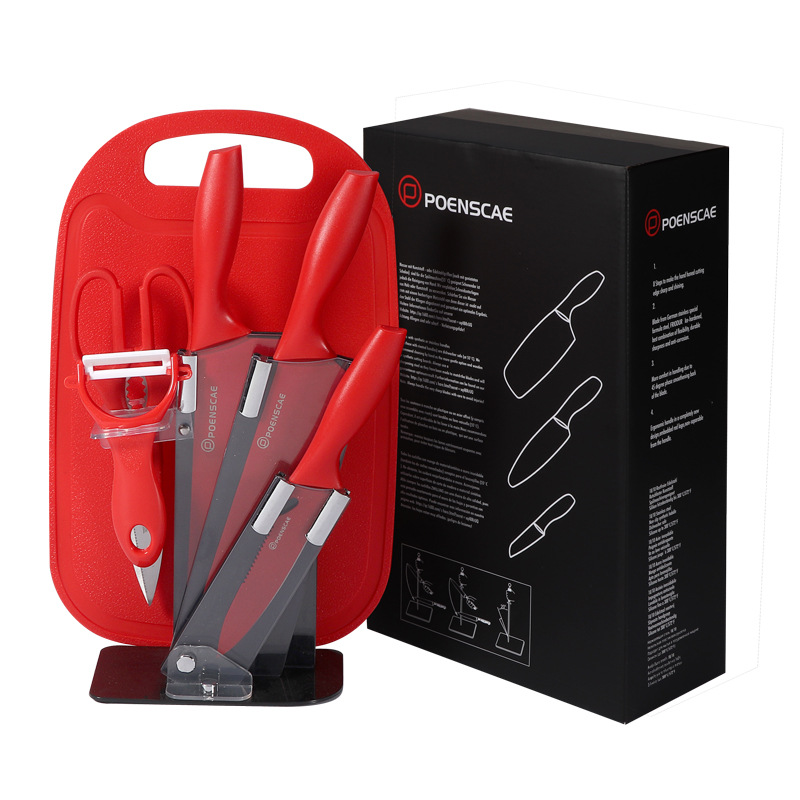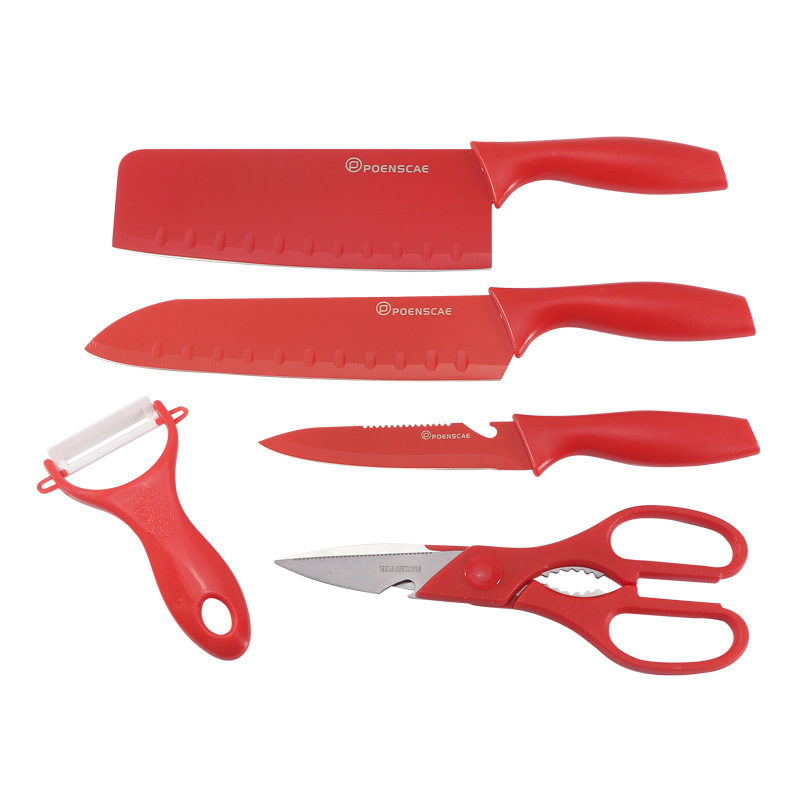 red 5-piece knife set