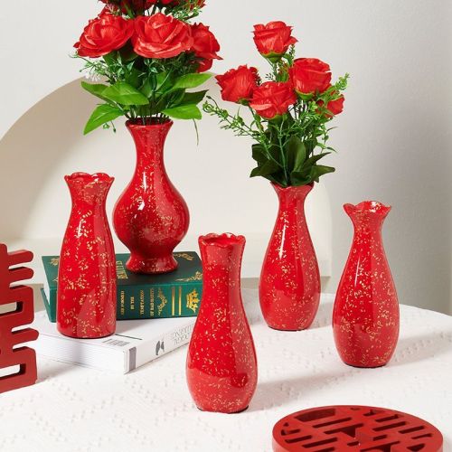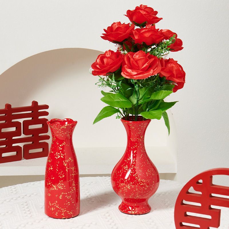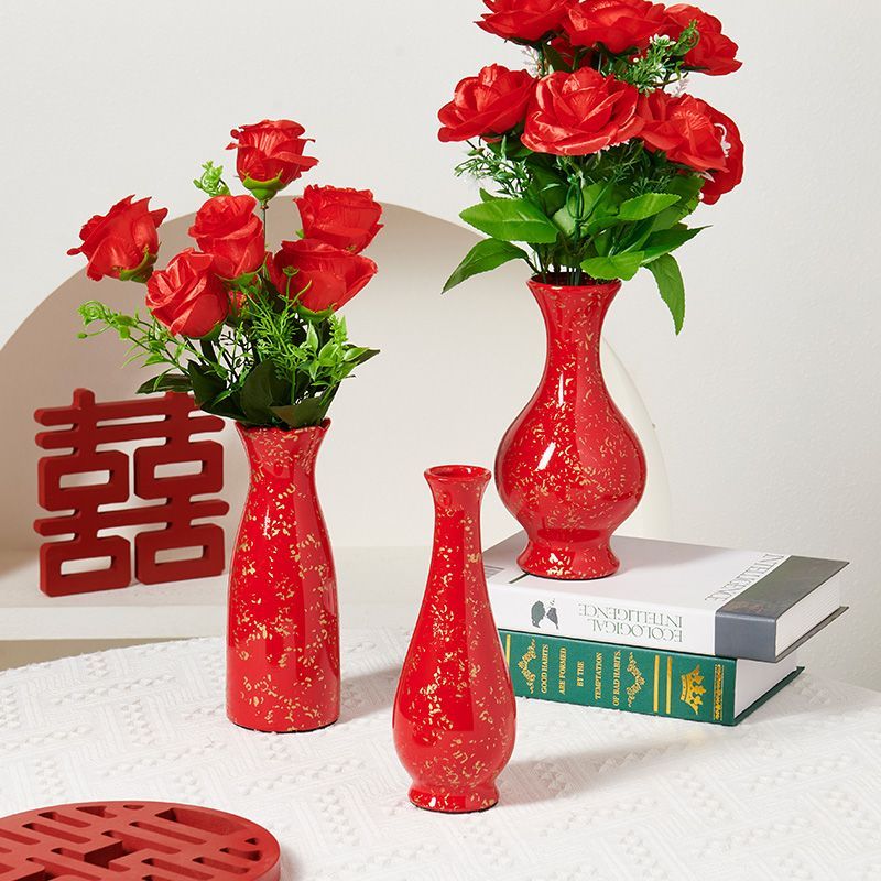 wedding ins style housewarming chinese red advanced ceramic vase dried flower hydroponic living room entrance wedding room advanced decoration 中文版