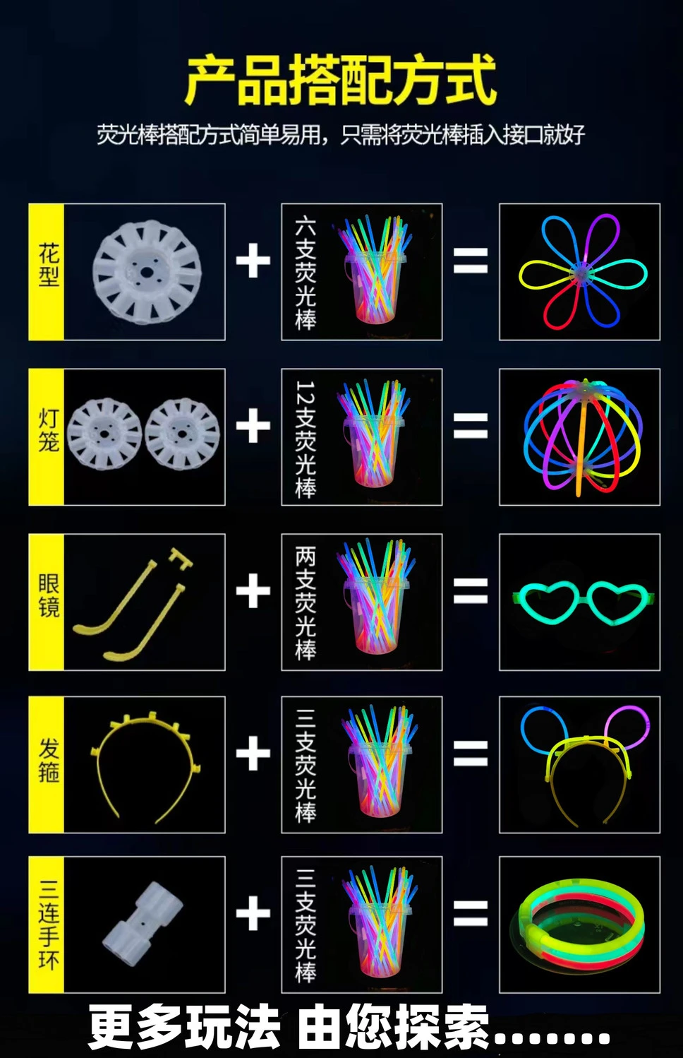 | light stick 50 + headband 5 + glasses 5 + single head 20 | ¥28.1 | 999999 piece available |