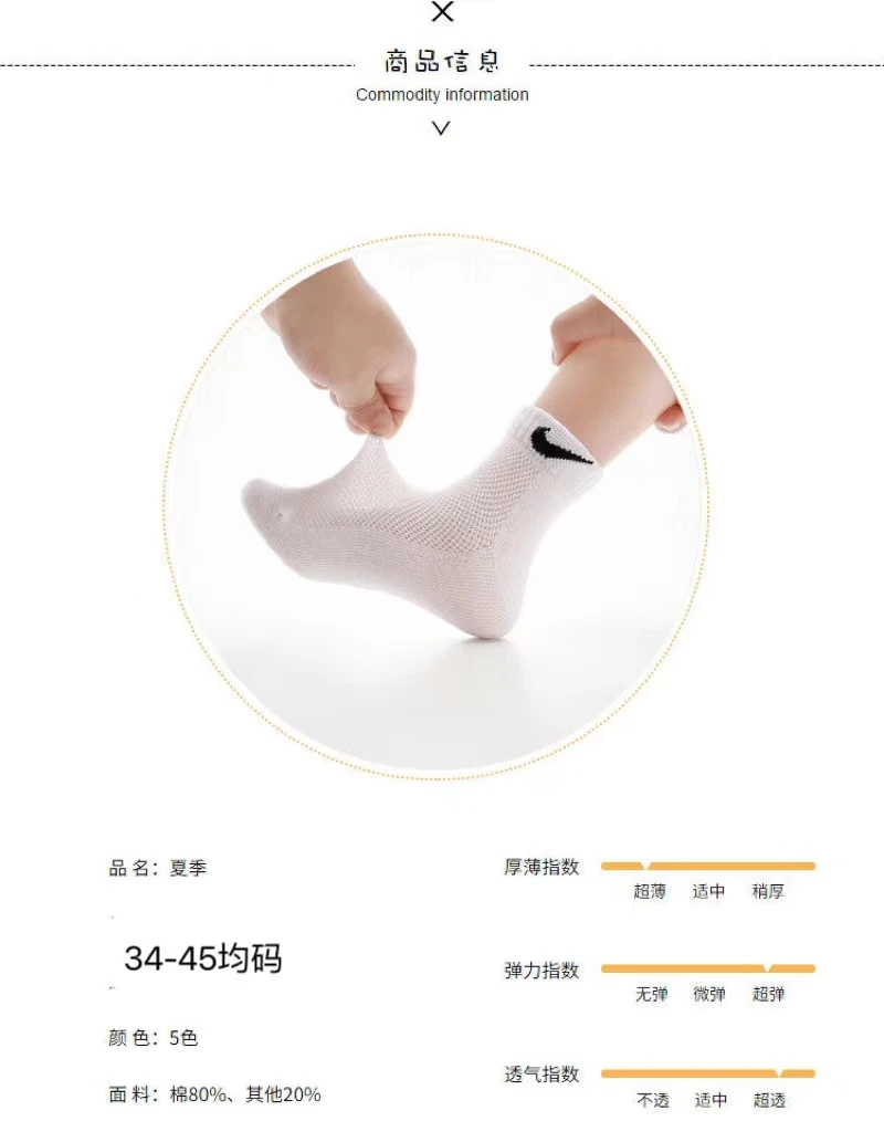 | 5 pairs of mesh [white + white + white + white + black]] | ¥14.82 | 999999 piece available |