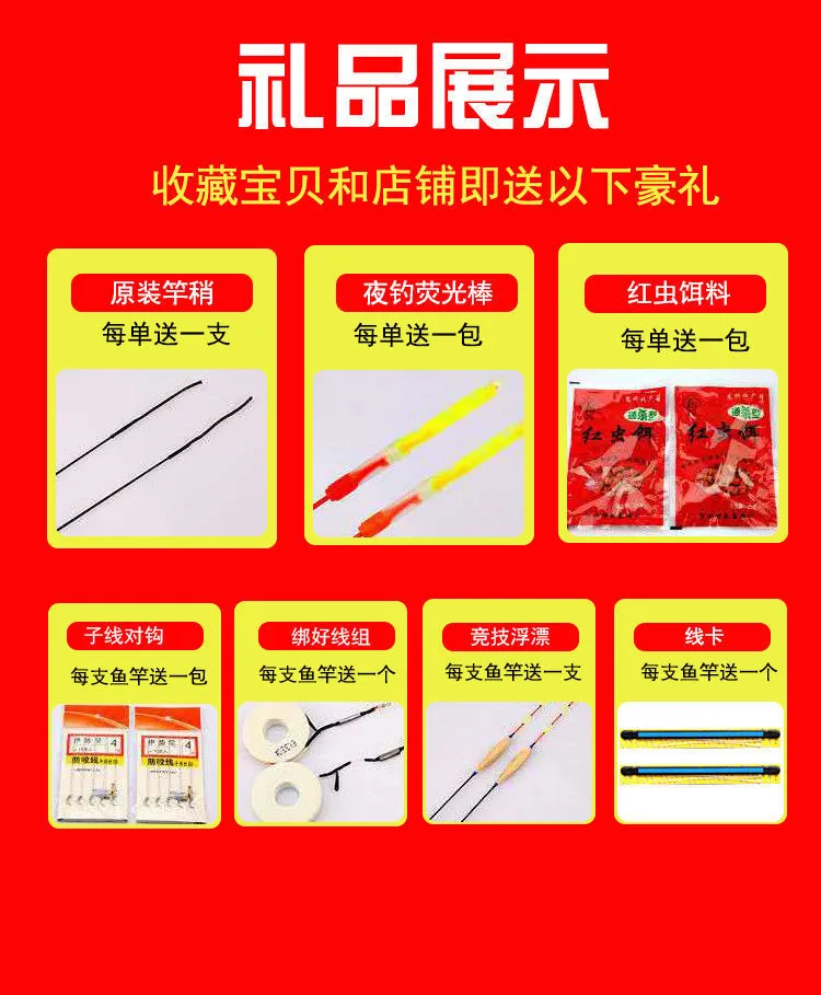 | (single fishing rod) 3.6 m + rod slightly + gift | ¥12.96 | 999999 piece available |