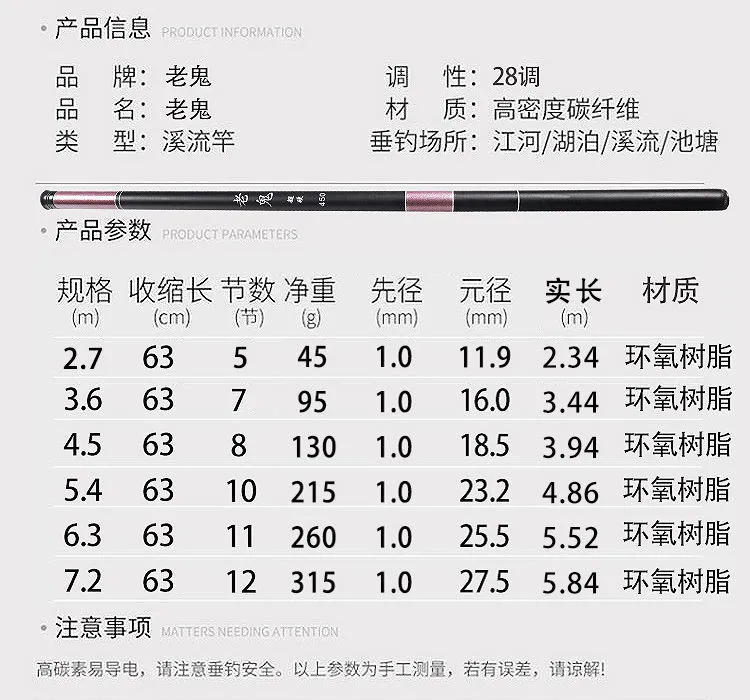 | 7.2 m bare rod without gifts | ¥26.13 | 999999 piece available |