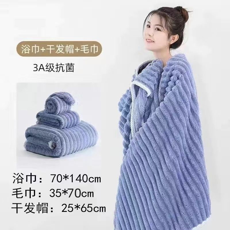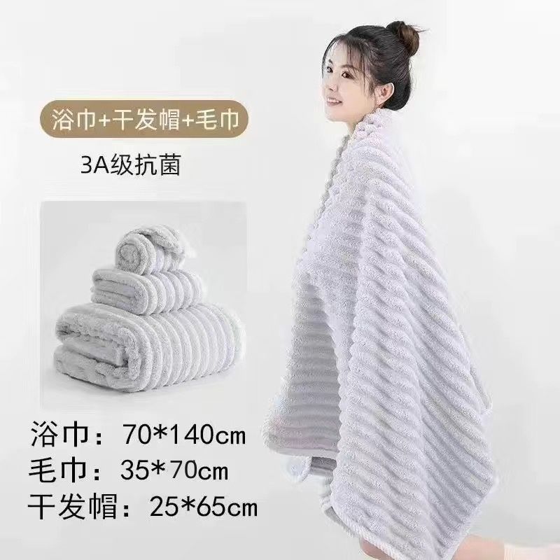 | thickening three-piece set: bath towel + towel + hair-drying cap-gray | ¥14.27 | 999999 piece available |