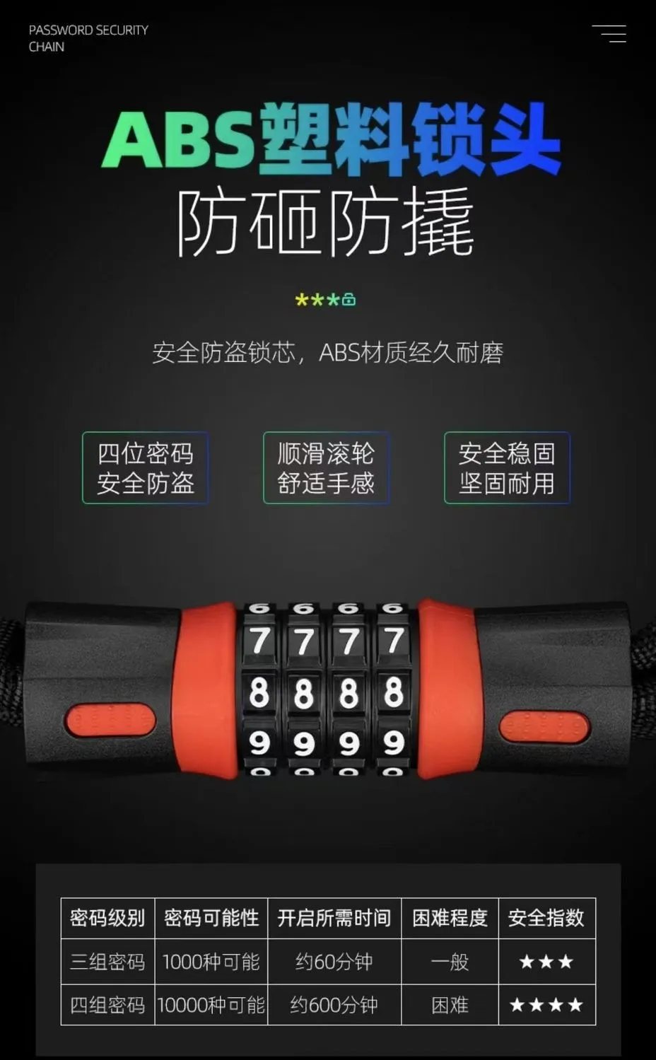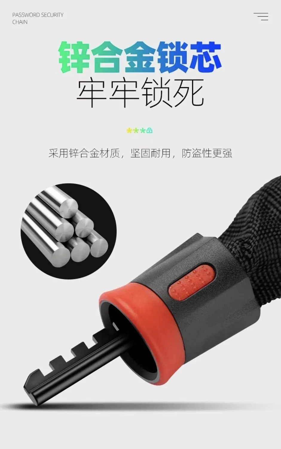 | upgrade password chain lock 0.6m [five-digit password]] | ¥10.82 | 999999 piece available |