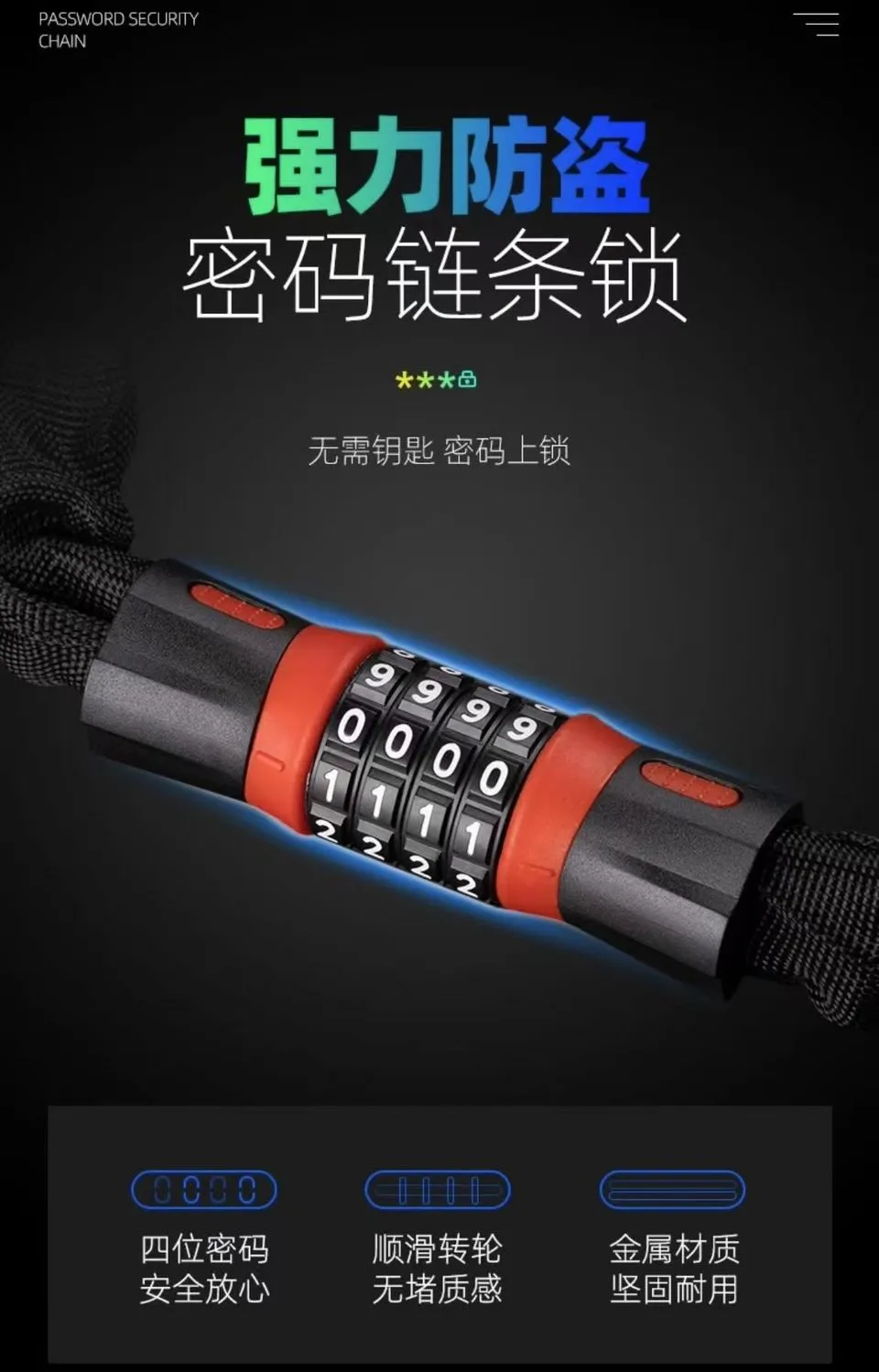| password chain lock 1.2m (four-digit password) | ¥12.87 | 999999 piece available |