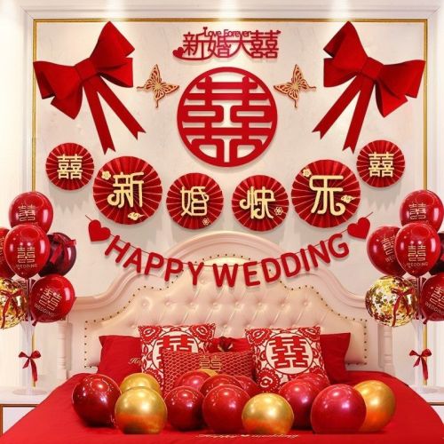 wedding room layout suit wedding decoration men's and women's bedroom living room background wall high-end new house wedding supplies