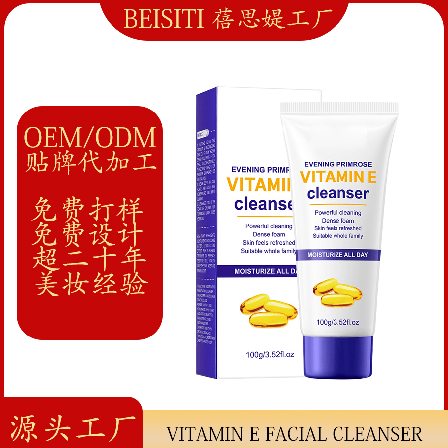 cross-border manufacturers customized brand oem/odm vitamin e moisturizing cleansing facial cleanser to map and sample processing 中文版