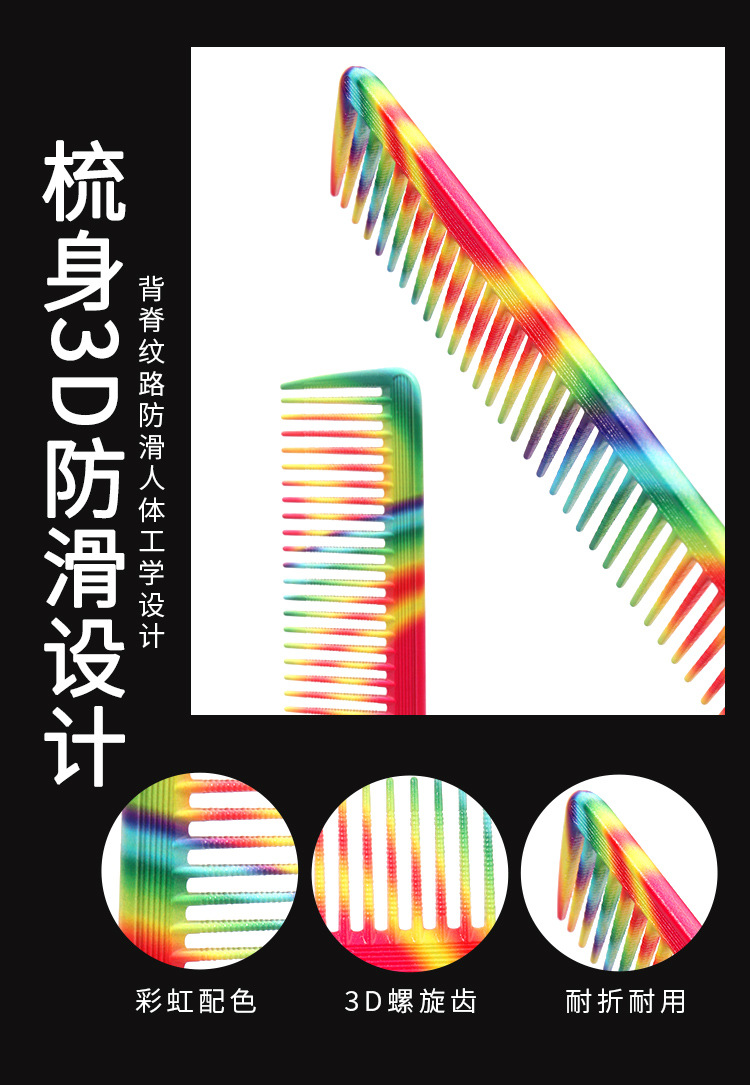 rainbow comb side hairdressing hair cutting comb haircut flat head comb hair salon professional cutting special personality 中文版