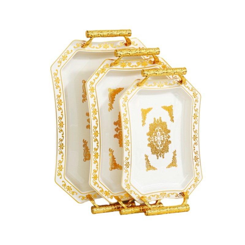 octagonal vintage fruit plate three-piece plastic pet portable antique handle fruit plate 中文版