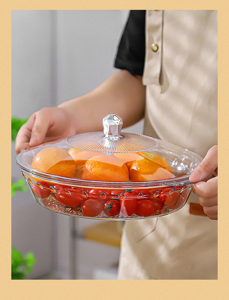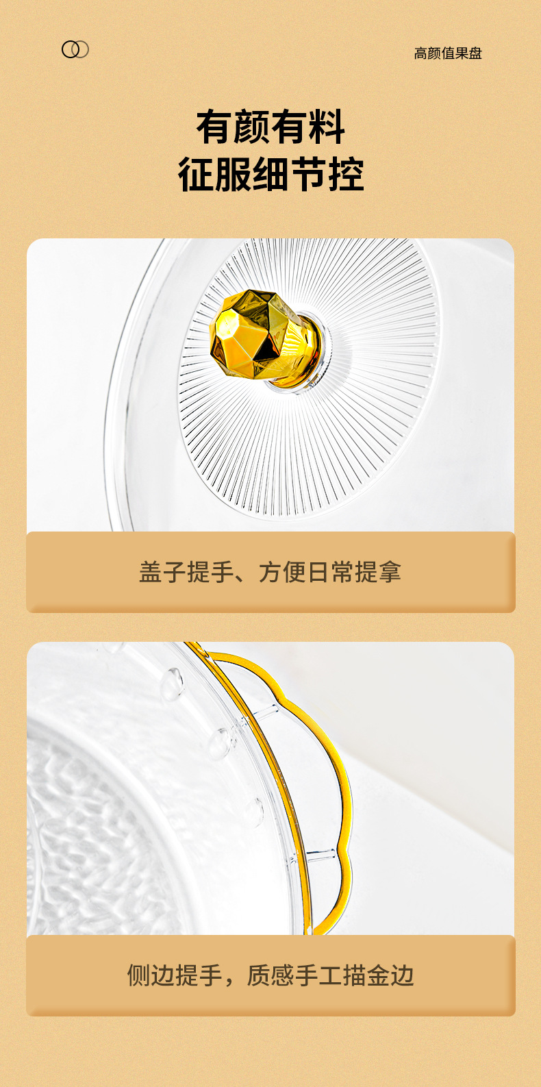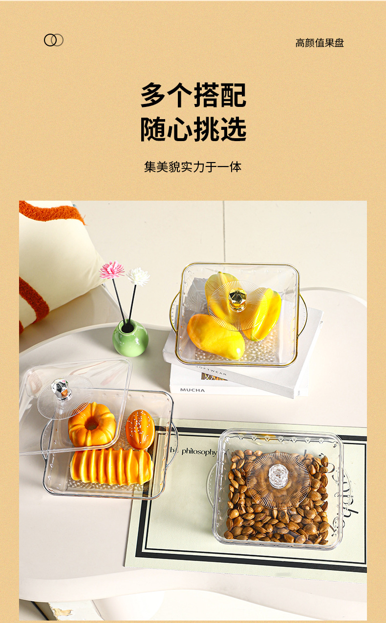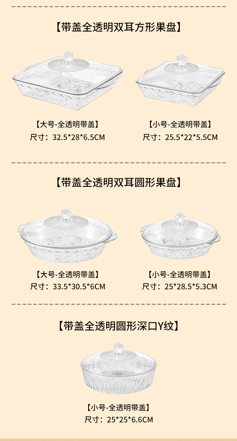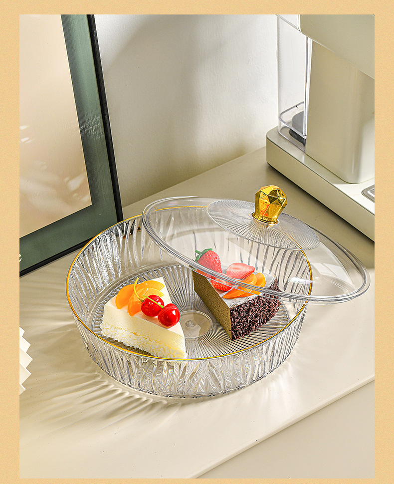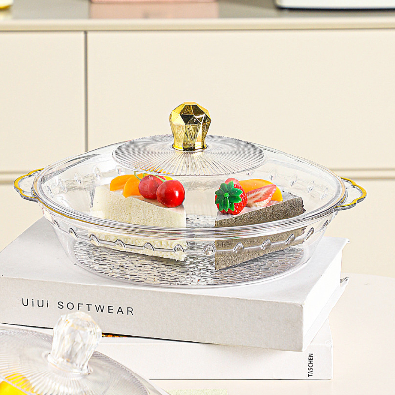 factory wholesale round with lid golden edge fruit plate binaural portable dried fruit tray stackable plate 中文版