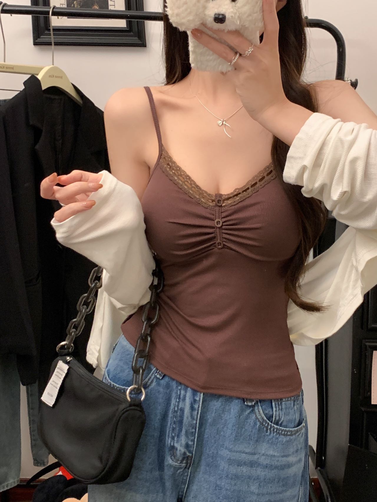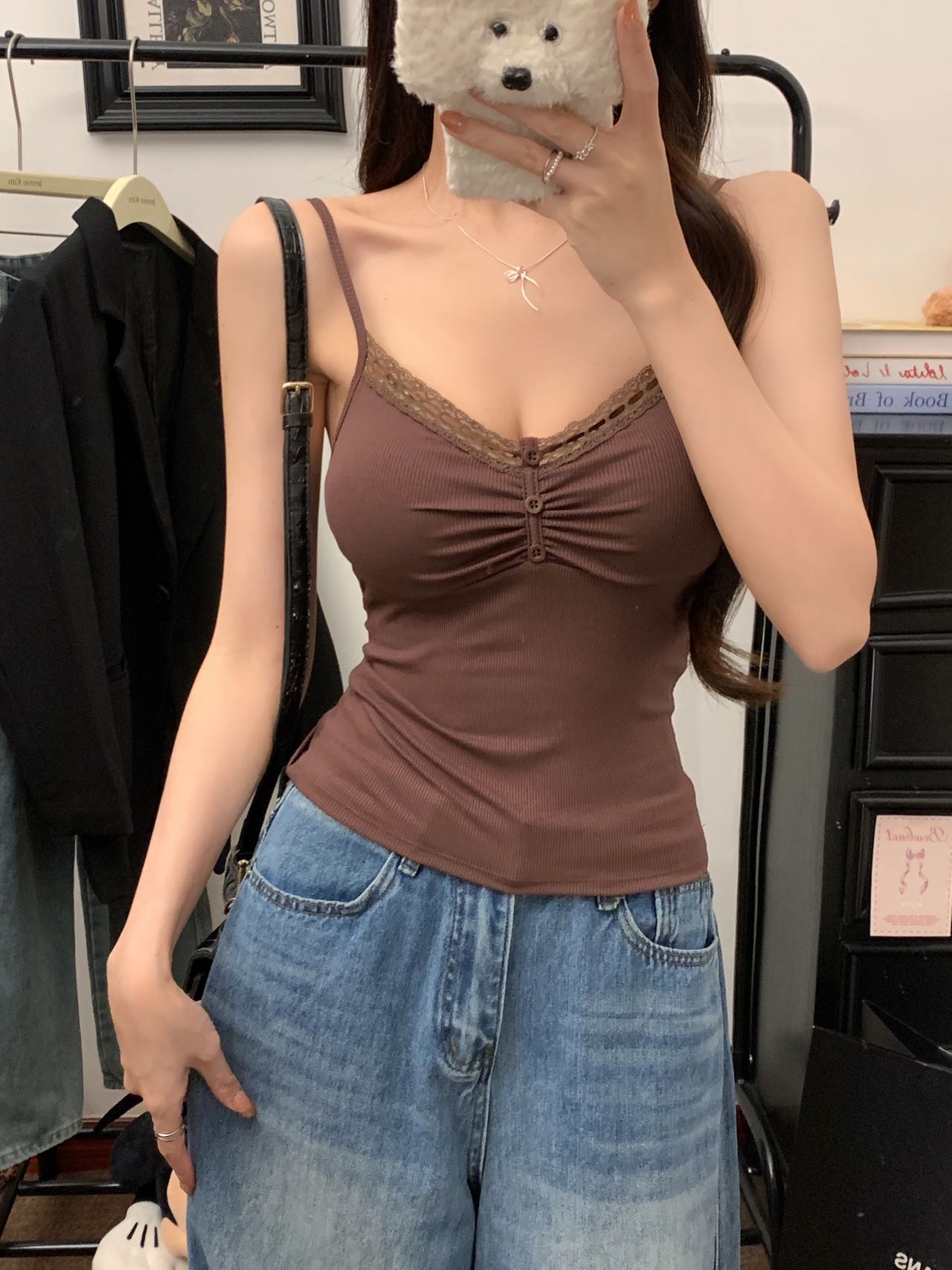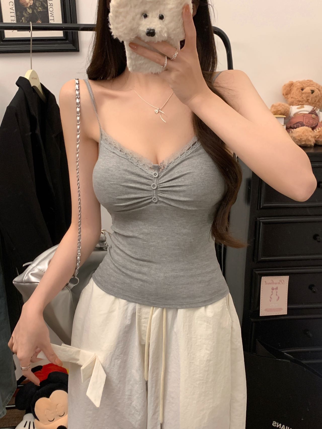v-neck 2025 new women's slim-fitting simple sweet and sexy style camisole pure desire camisole top bottoming shirt