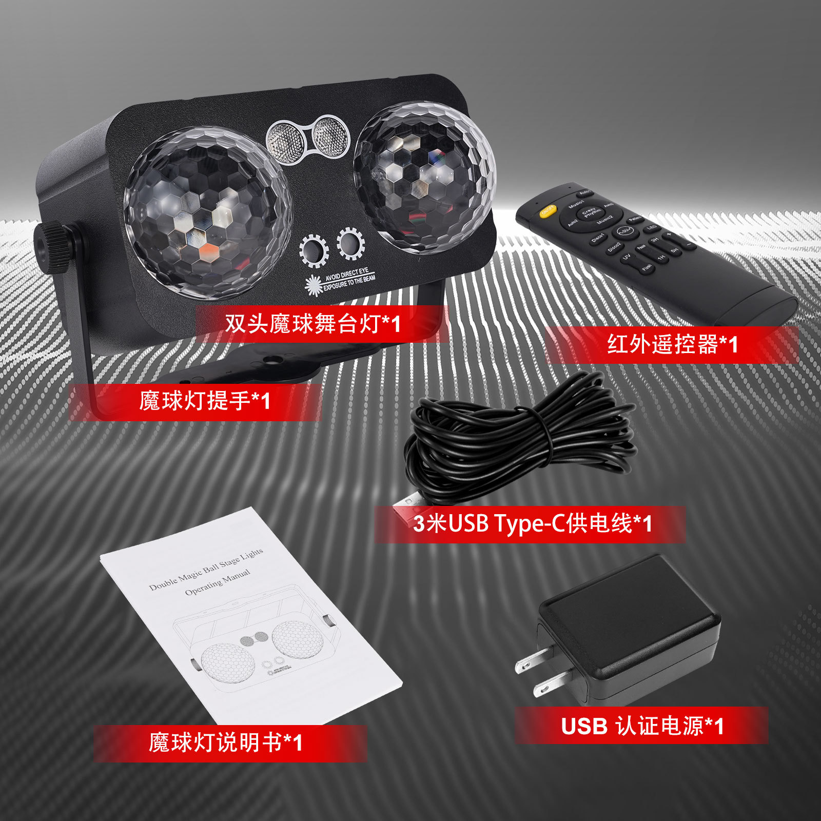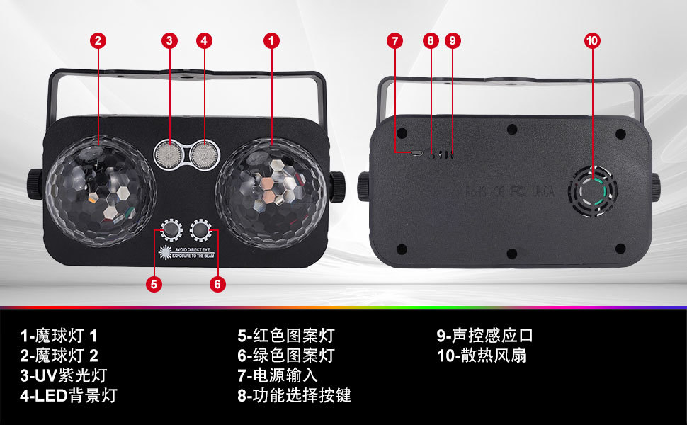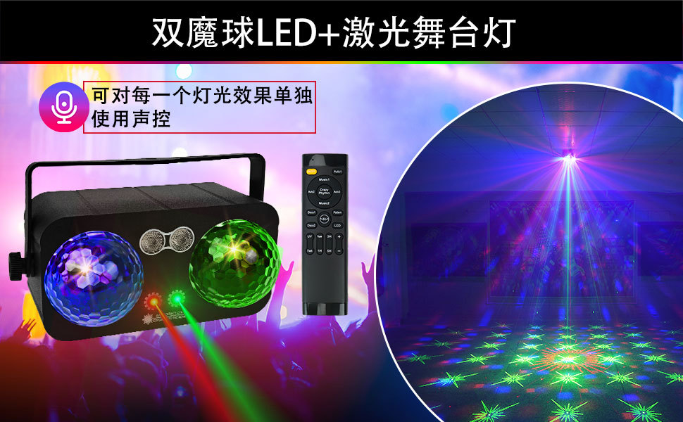 foreign trade exclusive for double-headed magical ball light colorful led stage lights ktv family ambience light strobe voice control bar lamp 中文版