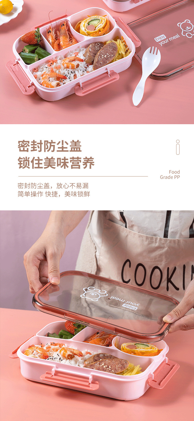 Product Code: DM6024 // Product Name: Yuewei Square Sealed Three-Compartment Lunch Box / Capacity: 1100ML