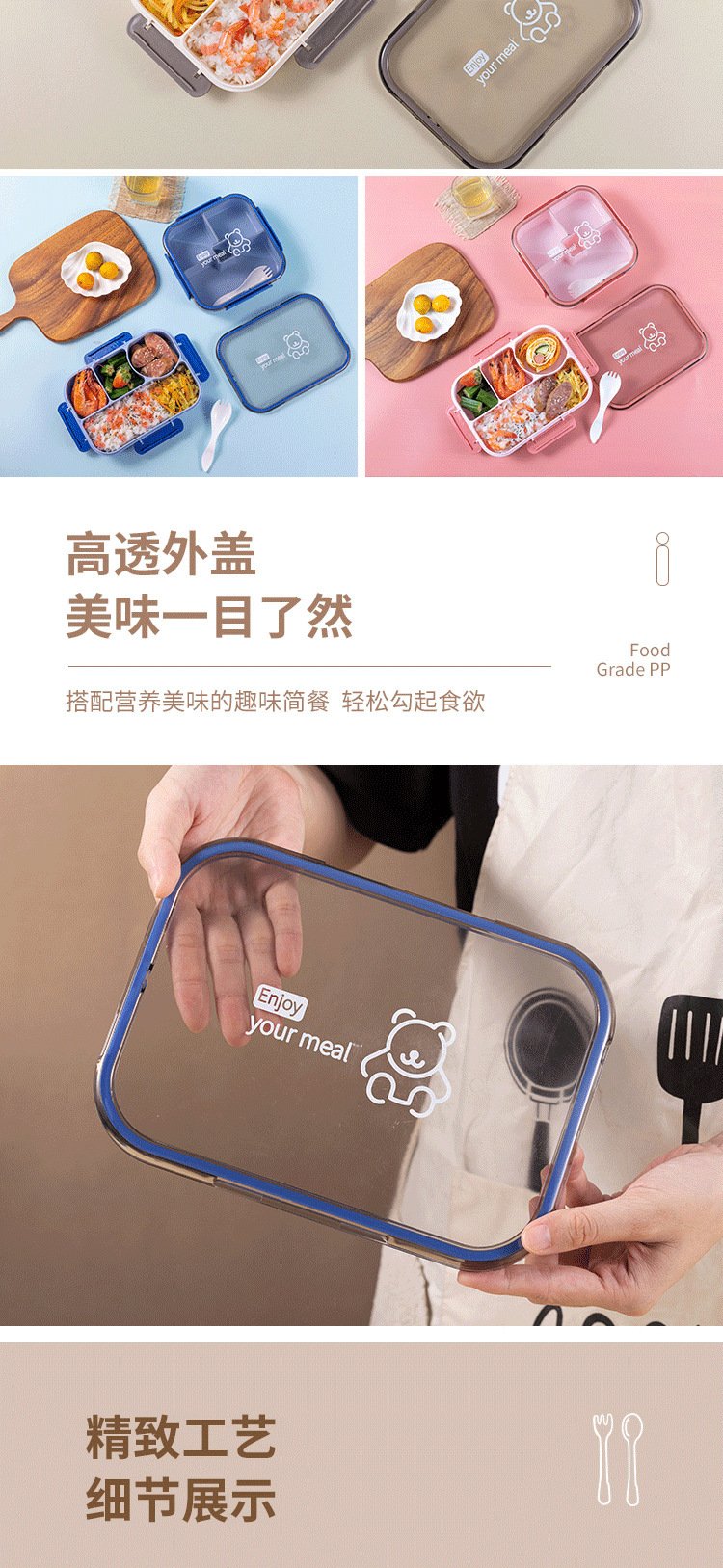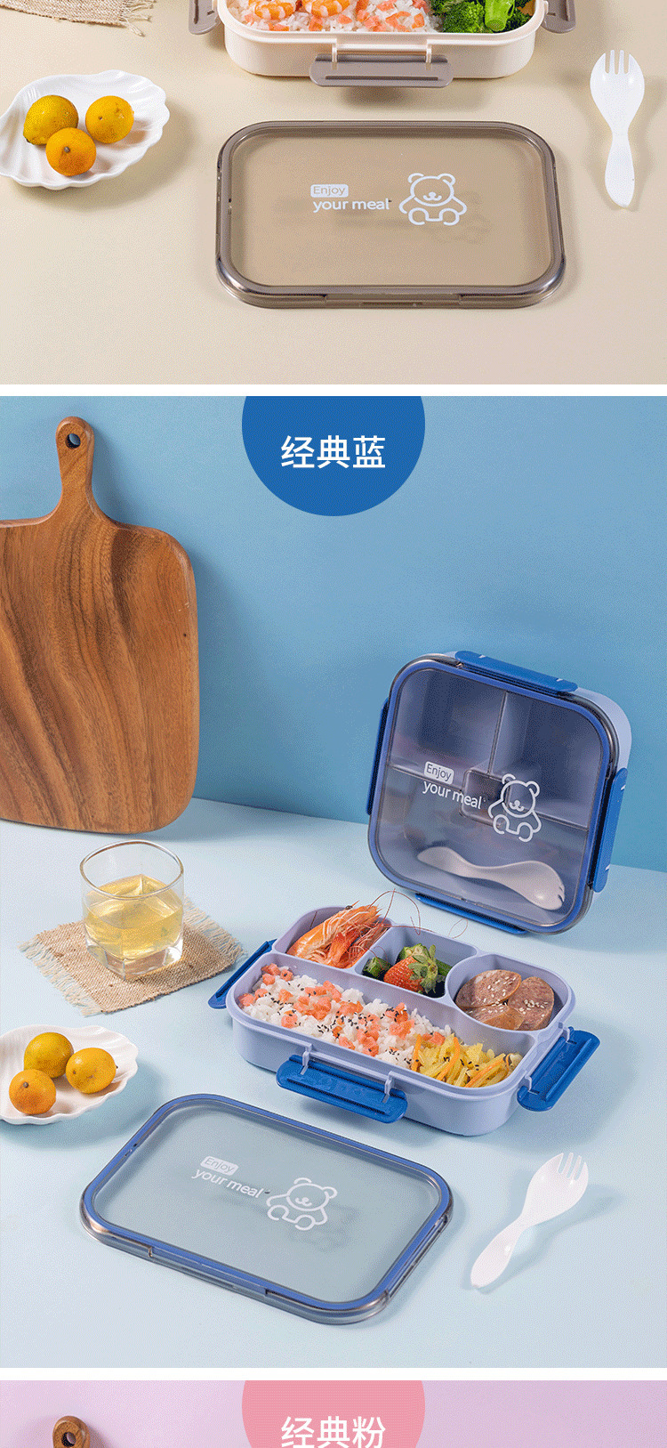 Product code: DM6022 / Product name: Yuewei Zhengfang Three-compartment Lunch Box / Capacity: 1050ML
